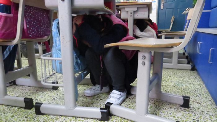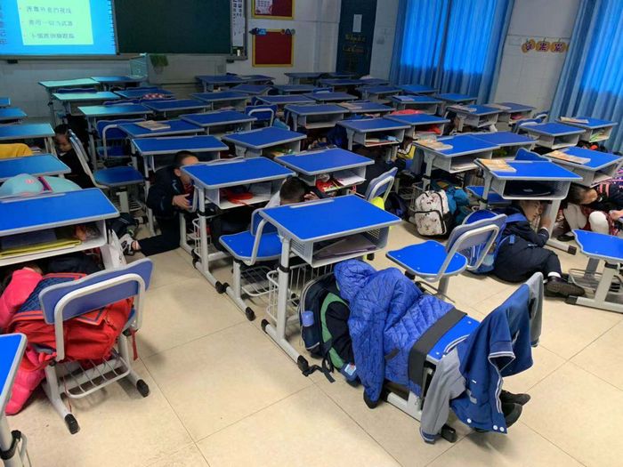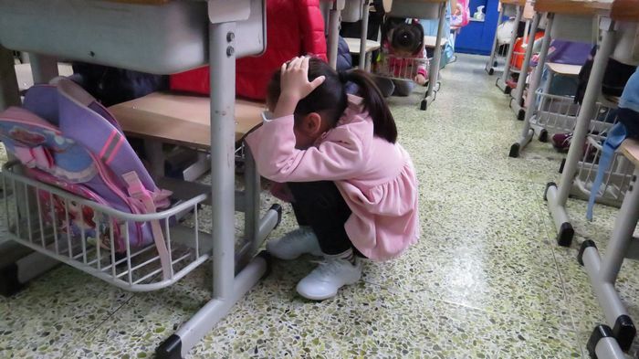 2019年12月20日上午,持械“歹徒”企图闯入校园,为非作歹,被发现后立刻上报,保卫科紧急出动,拉响警报,全副武装,追捕“歹徒”;警报响起后,老师们各司其职,及时到相应的岗位上保护孩子们;孩子们在老师们的保护下,纷纷跑回教室,关好门窗,利用桌椅隐藏自己,保持安静。时间一分一秒过去了,大家屏息凝视、严阵以待!