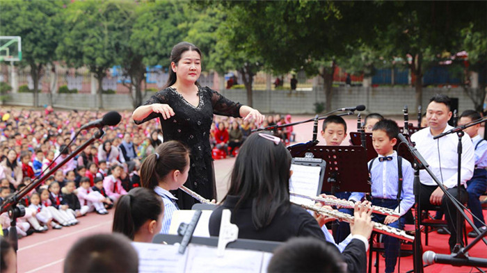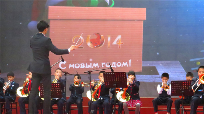 在肖校长精彩的致辞后,新年音乐会拉开了序幕。率先登场的正是学校管乐队,在康瑾琳老师的指挥下,他们带来了《苏格克里克序曲》和《我和我的祖国》。