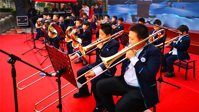 “叮叮当,叮叮当,铃儿响叮当”随着耳熟能详的前奏,全场师生跟随着小号,圆号,长号的铜管合奏哼唱了起来,一下子又回到了那个热闹的圣诞夜!