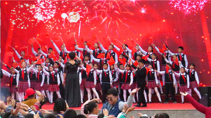 今天,千歌万曲凝聚成一种表达,歌唱祖国。今天,千山万水回荡着一个声音,祖国万岁!