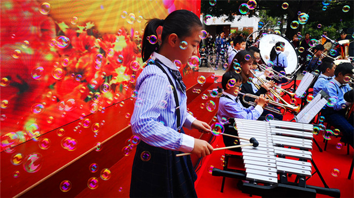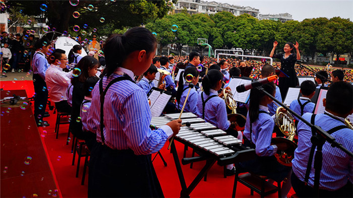 紧接着登场的是次中音号合奏,一首温柔的《飞越彩虹》表达了南小学子们心中对于梦想的憧憬。