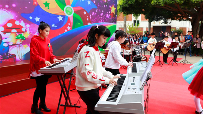 架子鼓的精彩演出真是让在场的所有人意犹未尽,这不,电声乐队的闪亮登场让大家再次陷入音乐的精彩世界里。