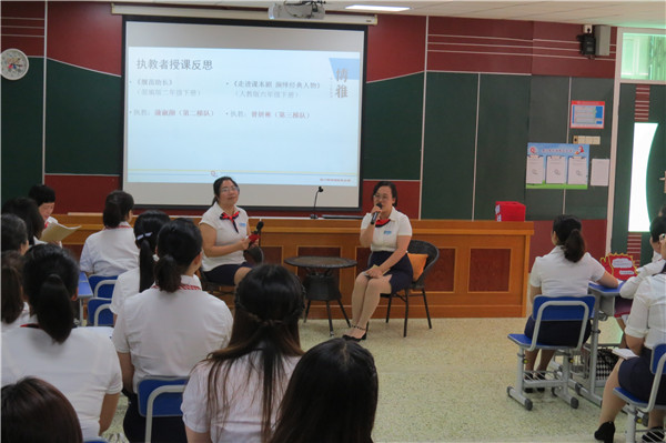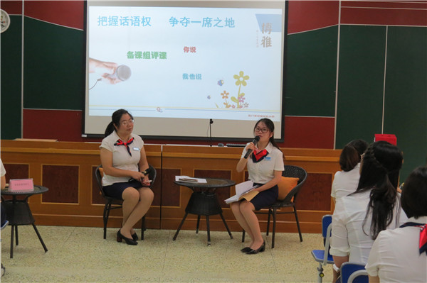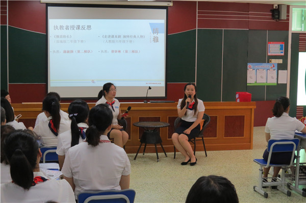 第二个环节是聚焦蒲淑颜老师执教的《揠苗助长》和曾妍彬老师执教的《走进课本剧,演绎经典人物》,各个备课组进行课例的反思与重建。