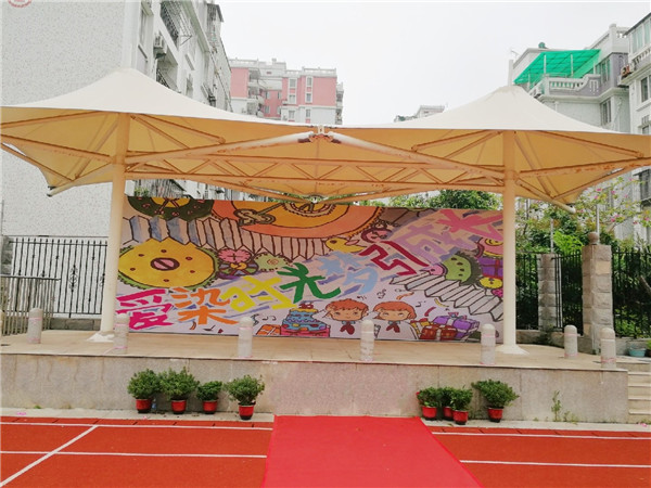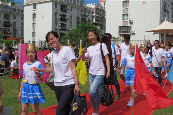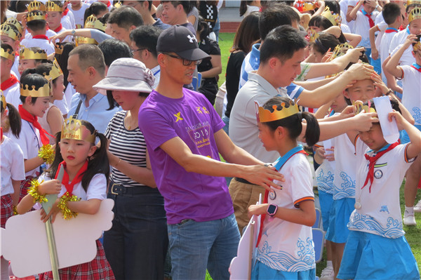 瞧,孩子们穿着自已设计的班服,雄赳赳、气昂昂地走在红地毯上!这些孩子们设计的班徽,有他们喜欢的元素,有他们的理想,个性化的设计在班服上熠熠生辉!主席台上,是孩子们设计的主题贴画,时间的齿轮、幸福的阶梯,甜美的笑容和多彩的礼物,是孩子们对未来的憧憬。来自自己的设计,让孩子笑容洋溢,更让家长们欣慰不已。
