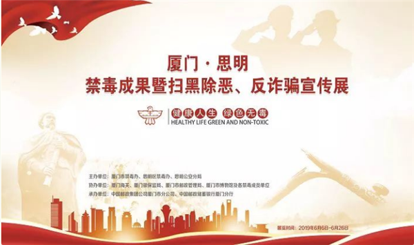 为纪念《中华人民共和国禁毒法》颁发实施11周年、虎门销烟180周年、迎接第32个国际禁毒日,思明区2019年全民禁毒宣传月活动,伴随着一场热血“硬核”的禁毒展览拉开序幕。