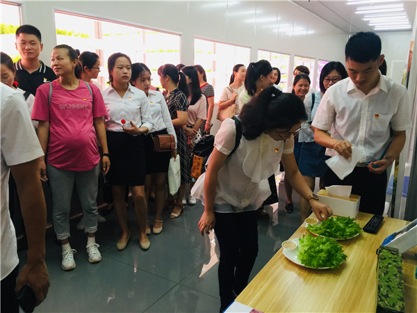 接着我们参观了三安植物工厂体验馆,感受到了光生物产业在我们生活各方面中的应用以及三安集团在这个行业中所做的努力。如用LED代替太阳光,用营养液代替土壤。LED光谱是由来自中科院植物所的博士根据不同蔬菜不同阶段的需要量身定做的,可为植物提供最佳的光环境等。