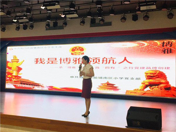 最后,我校党支部肖淑芬书记“我是博雅领航人”的主题发言,也同样打动人心。她向大家解读了“博雅”领航三大内涵,阐述了“博雅”领航八大路径,展示了“博雅”领航三大成果。三安光电科技有限公司的党员们纷纷表示,前埔南区小学的党建工作硕果累累,党员教师的蓬勃发展令人称赞。大家赞叹道:前埔南区小学教师群体的成长不是偶然形成,是不忘初心,砥砺前行的必然成长;是聚合性资源,互相启迪,团结奋斗的加成反应。