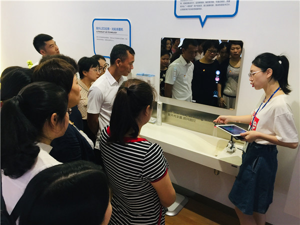 在三安光电科技有限公司郑主任的带领下,全体党员参观了三安化合物半导体科技体验馆。郑主任介绍了LED的发展历程及广阔的市场前景以及三安光电在这一领域中所做前沿研究。紧接着全体党员步入到芯光、芯技、芯梦空间体验区,从家居、城市、商业三个部分真切的感受到高科技已融入到生活的方方面面,给人们带来更多的便利,节省更多的能源,减少不必要的浪费,同时高科技的魅力也激发了全体党员的爱国情怀。