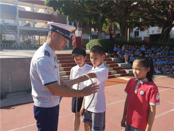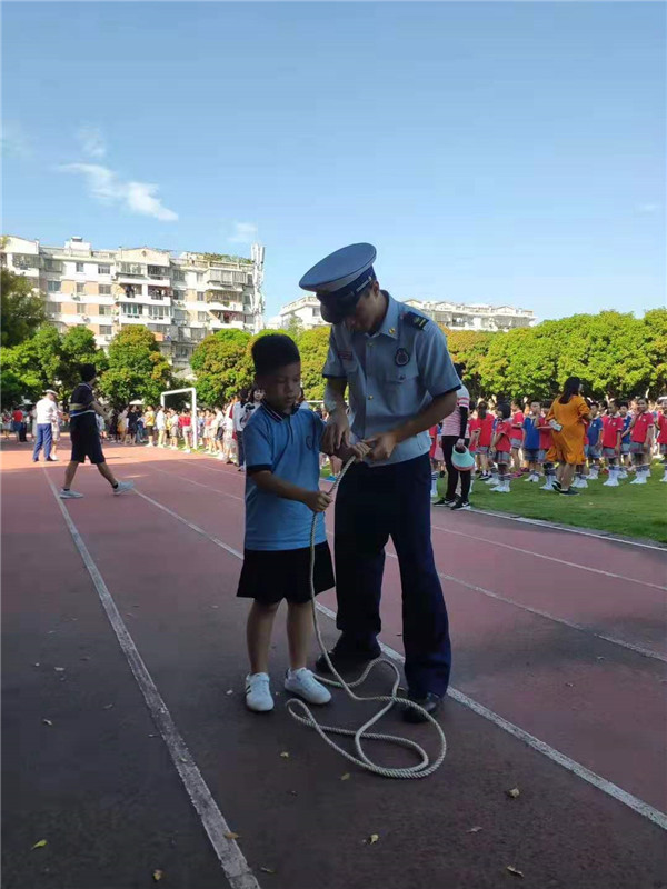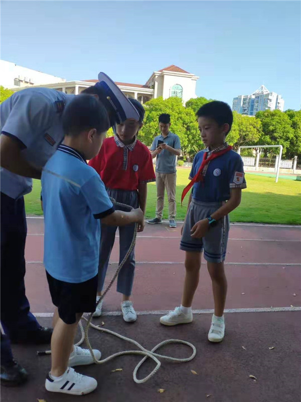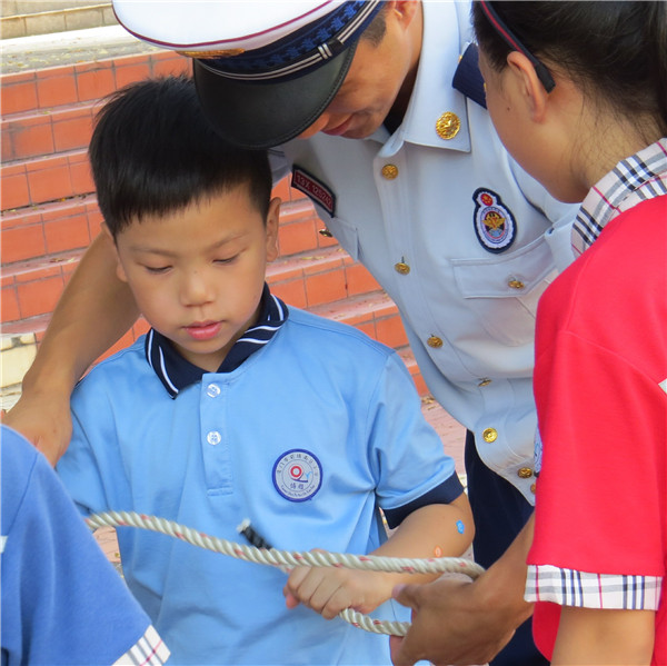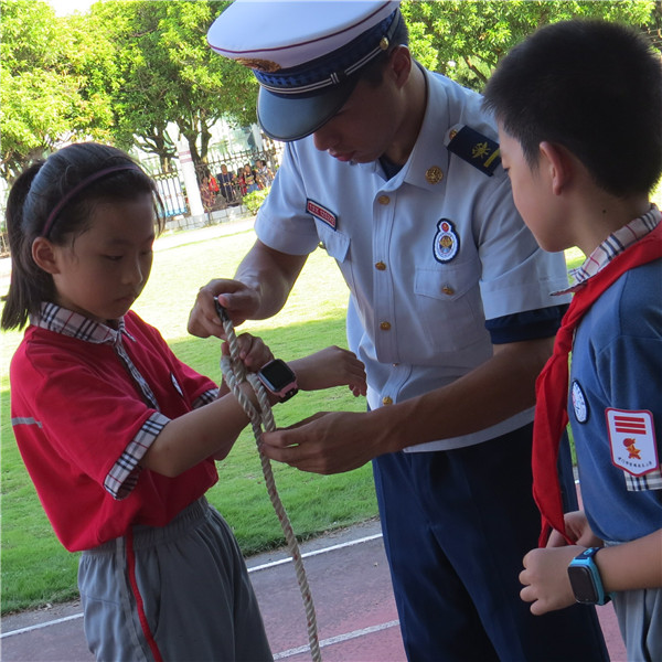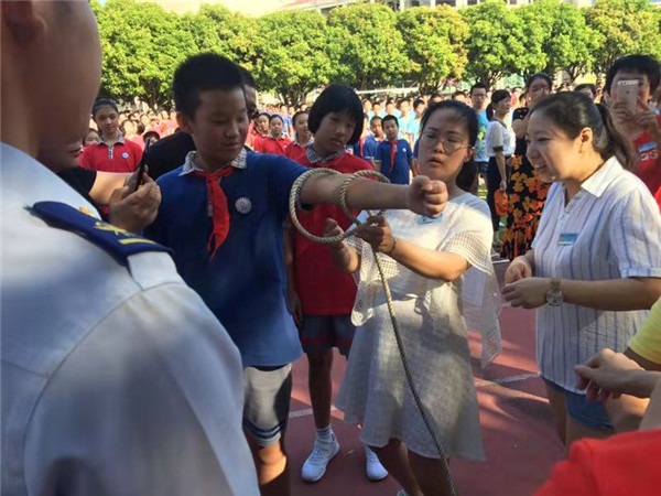 小绳结,大作用。教官们一丝不苟的讲解吸引了在场的师生。老师、同学们纷纷上前学习。(图4(1)-(7))