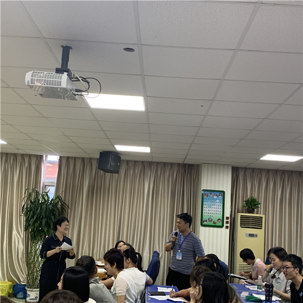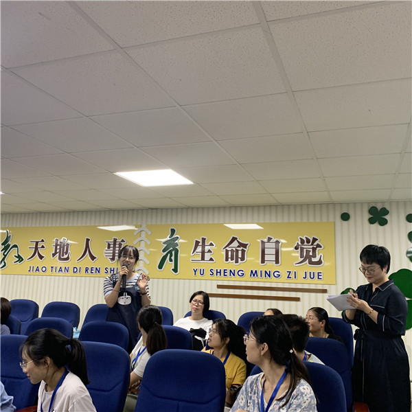 林老师的讲座分为两部分:第一部分是《关于板书的那些事儿——GO于板书中的运用》,第二部分是《评课,拾级之旅》。林老师以头脑风暴的方式开场,充分地调动了现场的气氛。在场的教师们两两结对激烈地讨论着,并积极发表了自己关于板书七个问题的看法。