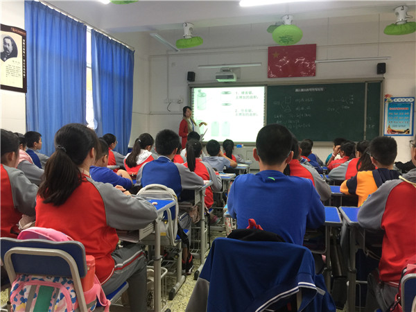 五年级的课题是《长方体和正方体的体积》,两位老师的教学风格各异。何春妙老师的课沉稳扎实,教学层次清晰,孩子们解题规范。郑秋双老师在教学重点的突破上细致入微,课堂互动感强,每一个环节都有拓展,学生的思维始终处于积极的、活跃的状态。虽然两位老师的教学切入点和教学方式不同,但却不约而同地给学生们提供自主探索的平台,引导学生发现体积单位的数量与长方体、正方体体积的关系,从而推导出长方体、正方体体积公式。学生不仅“知其然”,更“知其所以然”,具有很强的借鉴性。