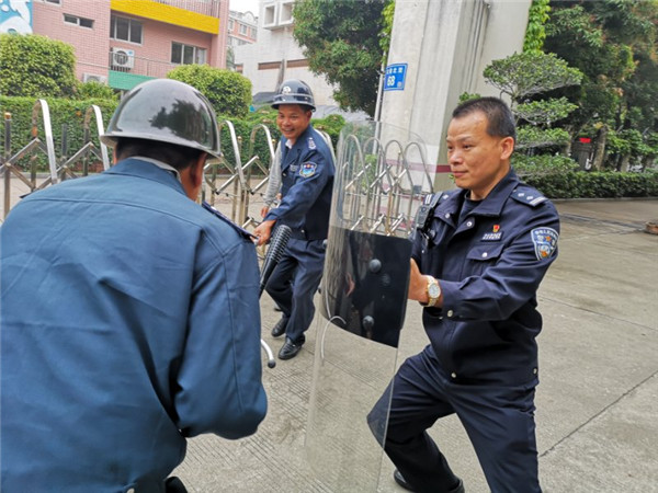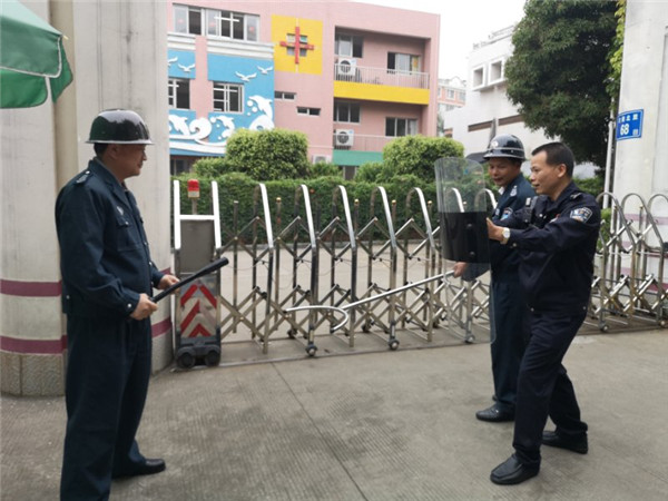 通过近3次演练活动的培训,胡震宇副校长说到:“常态抓好这项工作,能更好的让我校教职工熟练的掌握使用盾牌、钢叉等技巧,以确保在发生突发情况时能正确的处理。”