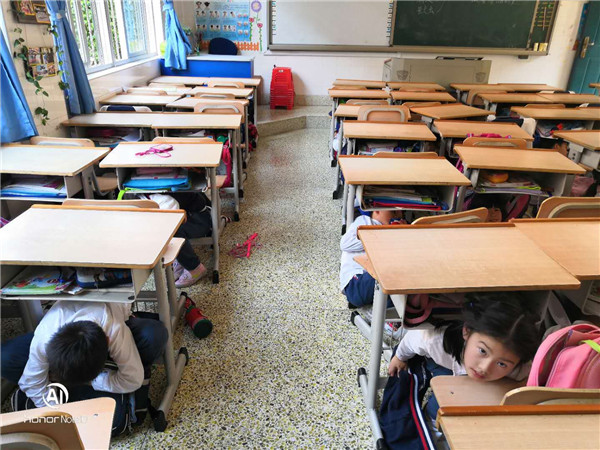 二、积极宣传,营造氛围。我校高度重视防灾减灾日的宣传工作,5月6日学校利用升国旗仪式进行了以《如何防震减灾》为主题的国旗下讲话,号召全体师生做到:防灾减灾,从个人做起。5月7日,通过LED电子屏滚动显示标语,大力宣传习近平总书记关于防灾减灾救灾重要论述,并利用校园广播对全校师生积极宣传防灾减灾知识。各年段各班级通过班队会等形式宣传介绍各类突发事件的种类、特点和危害,普及防灾减灾的基本技能和自救互救的应急常识。我校还积极组织学生参观校园安全教育长廊,宣传介绍应对突发事件的有效处置方法、采用的各种应对措施等。