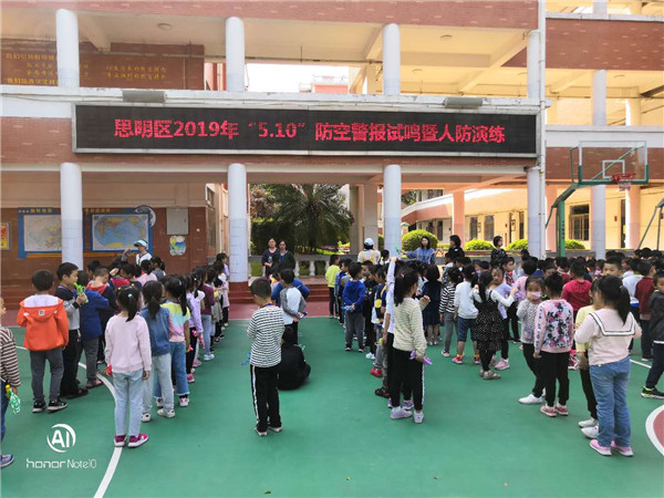 五、实战演练,增强本领。5月10日15:00——15:30,我校组织全体师生开展2019年“5.10”防空试鸣暨人防演练,全面提高师生员工应急避险和自救互救能力。随后,邀请厦门市消防支队官兵到校开展了一次消防安全专题培训和演练。通过这些实战演练,提高了全体师生安全防范本领。