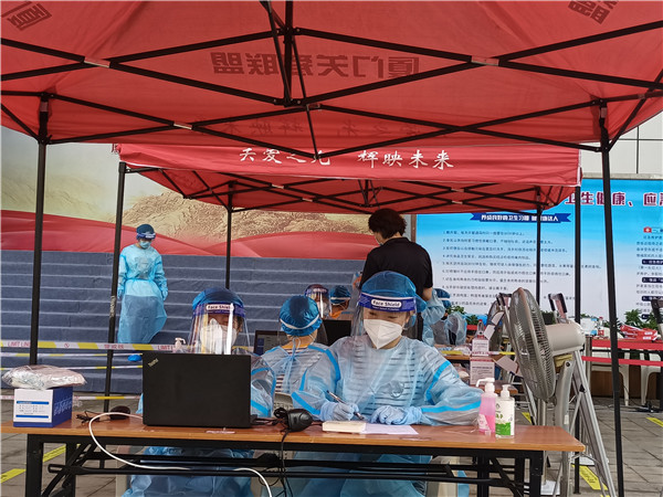 2021年9月15日,南小再次集齐了20名教师志愿者奔赴厦门市青少年宫,协助该核酸检测点开展工作。志愿者们帮忙录入信息、核查信息、维持排队顺序,随时提醒排队人员做好防护工作。志愿者们身上的衣衫干了湿,湿了又干……但是始终没有停下手中的任务。