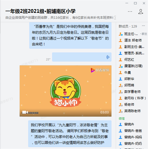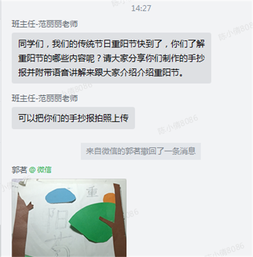 线上班会课应该怎么上?学校各年级的班主任们通过集体备课各展所长,或收集资料,或制作视频,或推送相关链接,营造出了线上线下携手,老师学生互动,学生家长同行的温馨氛围,活动通过录视频,做手抄报等多种形式,向孩子们介绍了重阳节的来历、意义和风俗。