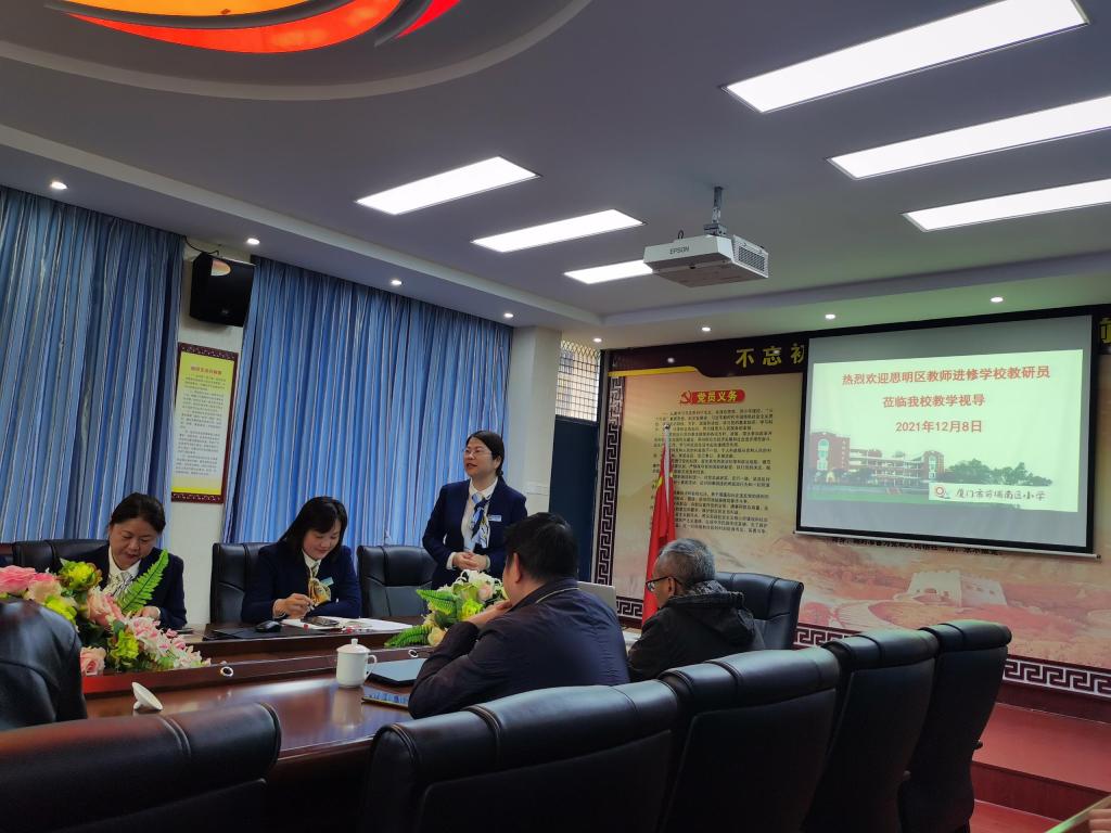 冬日暖阳正当时,教研之花扑鼻香。为了进一步加强前埔南区小学教育教学的管理与指导工作,促进前埔南区小学教育教学质量的提高,借教学视导契机、促学校教育教学高质量发展。12月9日,思明区教师进修学校叶虹副校长、吴伟华副书记带领教研专家团队一行莅临前埔南区小学开展了为期一天的教学视导工作。