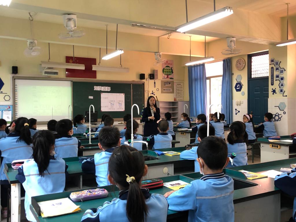 思明区教师进修学校叶虹副校长、观音山音乐学校郭艳煌副校长、区进修校江冰冰老师以及将乐教师进修学校的杨文梅老师走进了数学课堂,观评了6节数学常态课。叶老师听了一年级曹若南老师上的《九加几》,肯定了曹老师给足时间让学生动手操作,并在操作活动中培养言说表达的能力。她建议基于单元整体和学情进行结构化教学设计,在关注师生互动的同时融入五育教育,自然唤醒学生的行为和品德;叶老师、郭老师分别听了四年级高梦菲、赖加惠老师上的《商的变化规律》和六年级洪雅琳老师上的《用百分数解决问题》。郭老师认为执教老师都能进行整体建构,精准把握课时目标及重难点,对教材的分析较为透彻,同时也肯定了我们的六年级学生十分善于思考,在教师的不断追问和启发中明晰道理,真正经历知识和方法的建构过程。江老师听了二年级许怡萍老师上的《7的乘法口诀》和三年级骆玉琼老师上的《分数的初步认识》。江老师认为两位年轻老师的课堂互动感较好,在上课过程中语言亲切自然,贴近儿童。教师注重班级学生的常规教育,学生的操作活动扎实有效,数学素养高。专家们的点评让执教老师受益匪浅,也为数学组切实践行高效课堂、精准教学指明了方向。