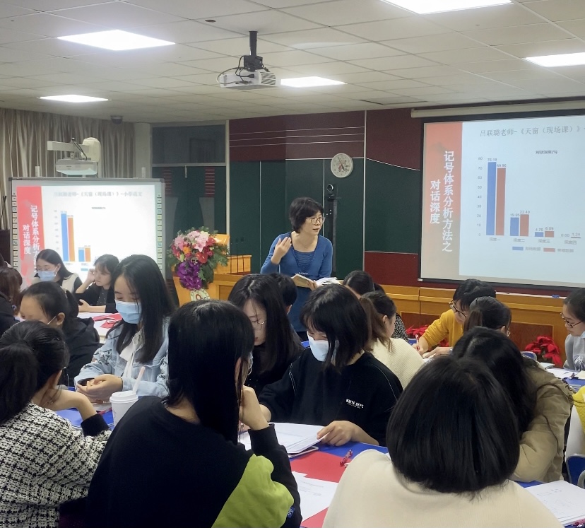 课后,课题组老师们利用采集的大数据,从S-T分析法、有效性提问、回应方式、四何问题、深度对话五个不同维度先对两堂课进行了量化分析反馈,再提出了一些思考与建议。蔡维真老师也提出了关于课堂的思考,如何让课堂活动更饱满,要“以终为始”,由目标导向问题,再来设置问题链,老师心中要有期待的目标,针对不同程度的学生该达到怎样的水平要做到心中有数,才能真正开展师生间的深度对话,撬动学生思维。