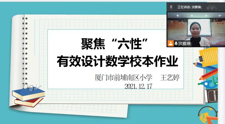 六年级数学备课组长王艺婷老师认为设计有效的校本作业应聚焦“六性”。第一,聚焦层次性,满足个体差异;第二,聚焦生活性,培养应用意识;第三,聚焦实践性,积累活动经验;第四,聚焦过程性,提升数学思考;第五,聚焦开放性,发展学生思维;第六,聚焦反思性,培养反思能力。王老师结合六年级校本作业中的案例娓娓道来,一份份作业,就是孩子们学习路上的脚印,记录着孩子们的成长与收获。教师应聚焦“六性”,设计好每一个层次的作业,真正落实“减负增效”,提升学生的数学核心素养,努力让数学作业真正服务于学生的全面发展。