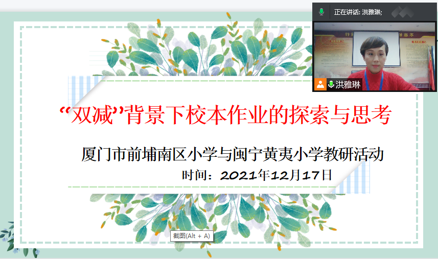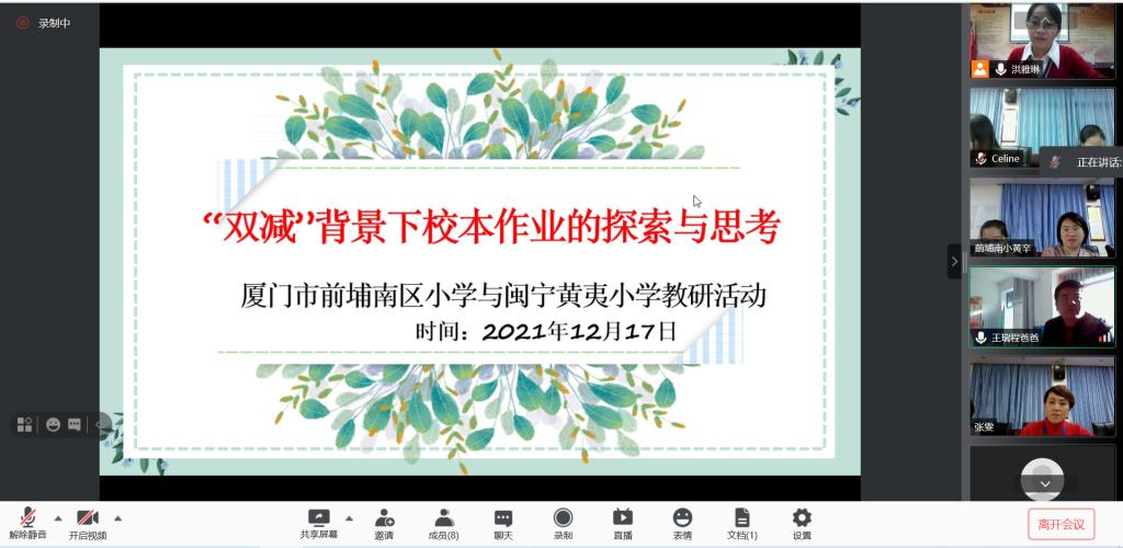 张雯副校长表示,空中“研”播厅将成为两校协作交流的常态。这样的空中研讨,虽远隔千里,却因彼此的热情而深感亲切。感谢黄夷小学的王建民主任和我校教科室黄秀文老师前期的策划,感谢两所学校语数英教研团队精心的准备和真诚的分享,期待全新的教研活动模式,能够滋养两校的友谊之花,推动两校的学习和交流。最后,张雯副校长热情地发出邀请,希望黄夷小学的马校长、王主任以及黄夷小学的伙伴们有机会能来厦门做客,来南小走一走、看一看。
