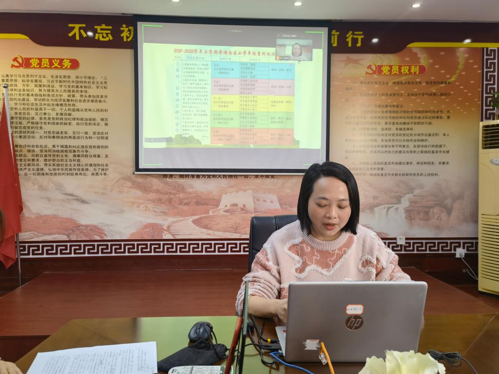 2022年1月6日上午,厦门市前埔南区小学与闽宁黄夷小学围绕学生工作中“年级项目活动推介”展开线上交流,教科室黄秀文老师开场并介绍与会人员。