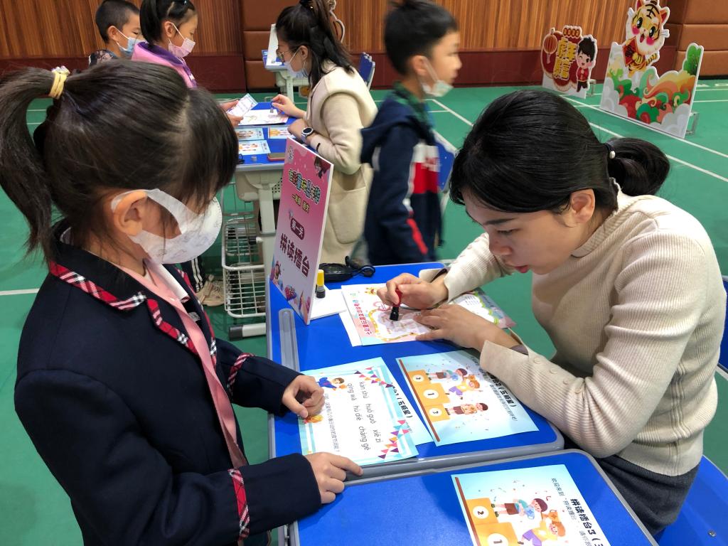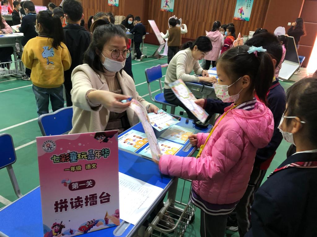 语文组开设了“拼读擂台”“识字列车”“阅读乐园”“妙语世界”四个项目。从拼音到词语,从读一段话到看图说话,内容层层递进,将学科知识与游戏结合,极大地调动了学生的学习积极性。