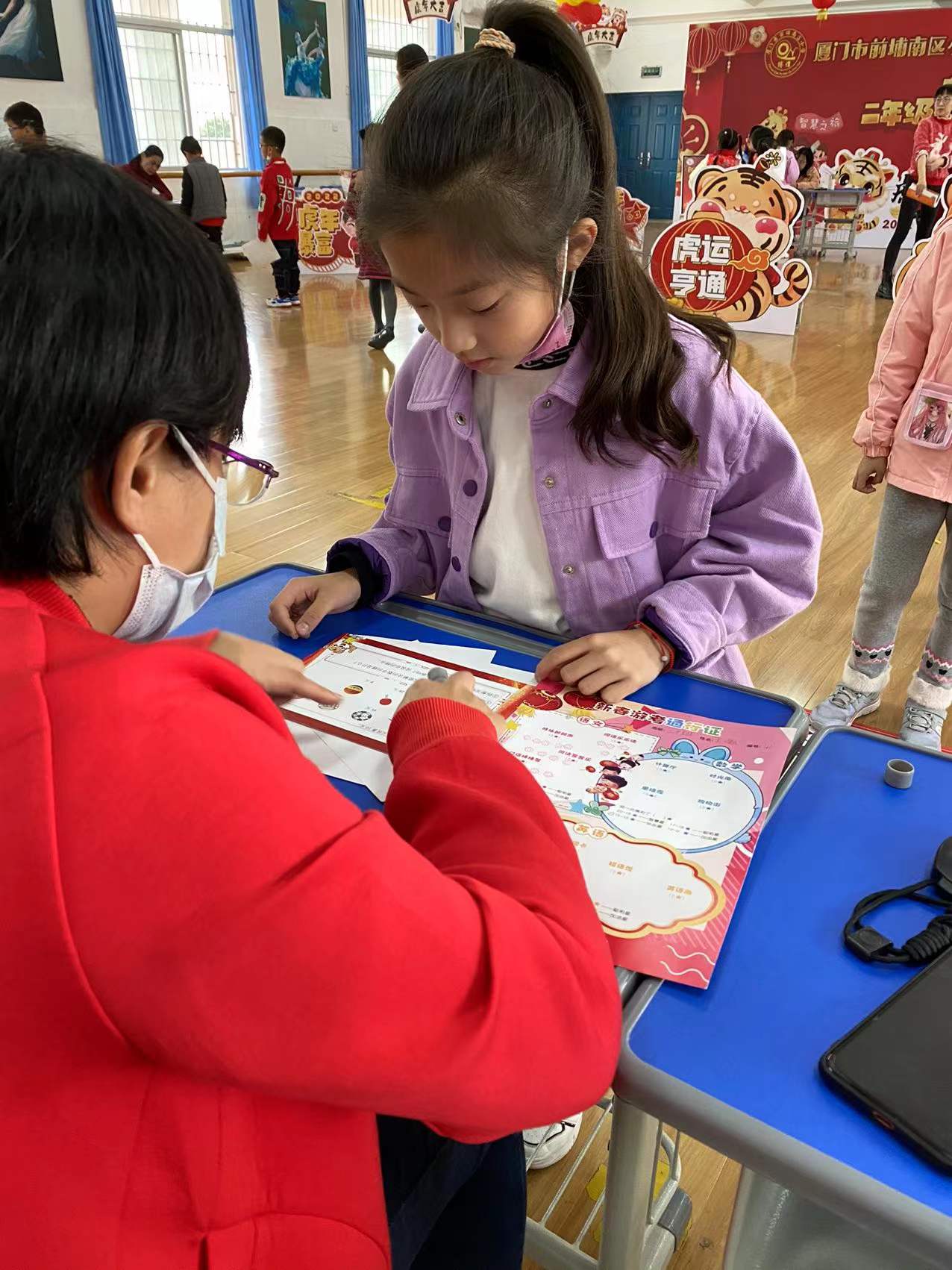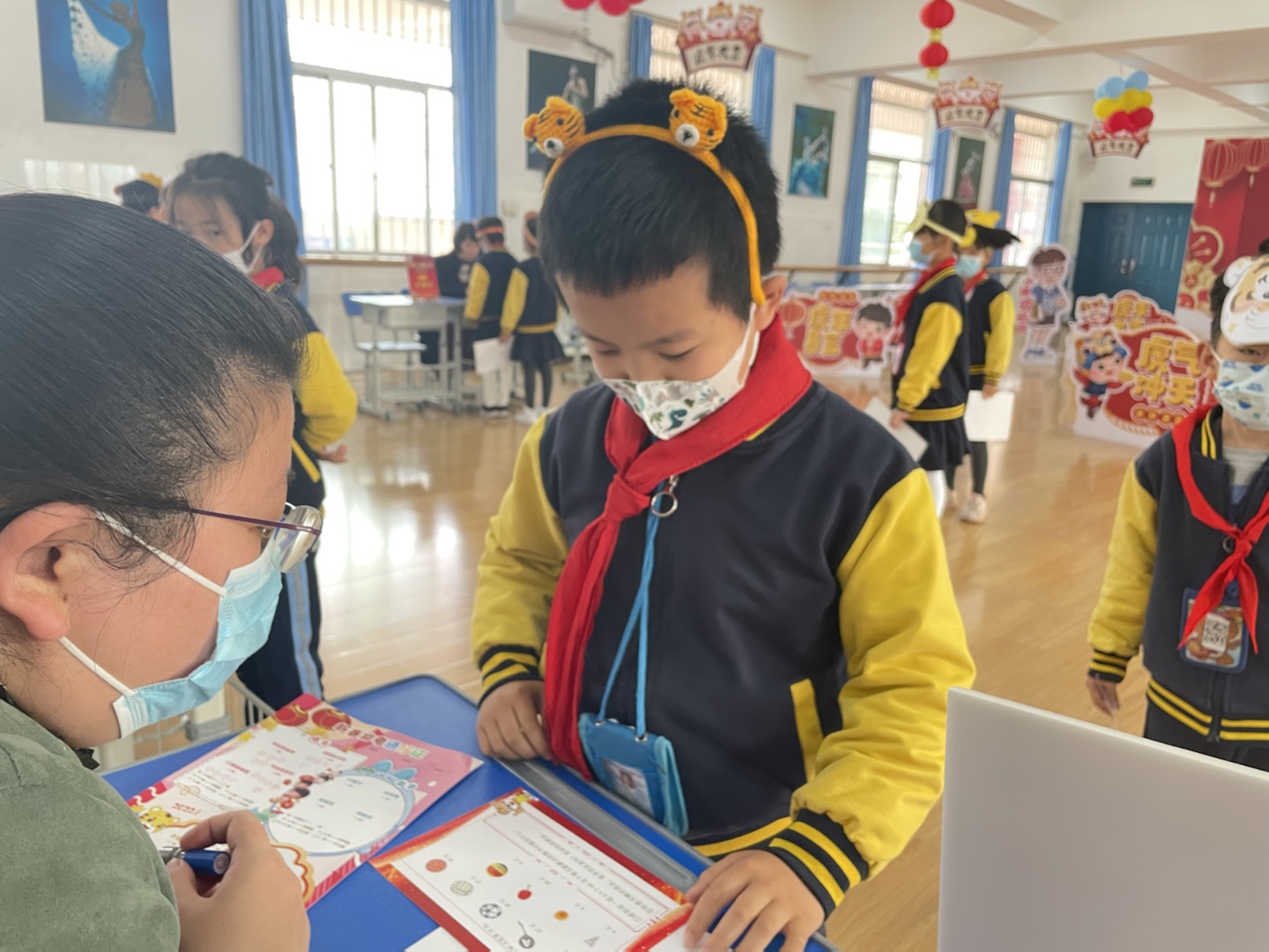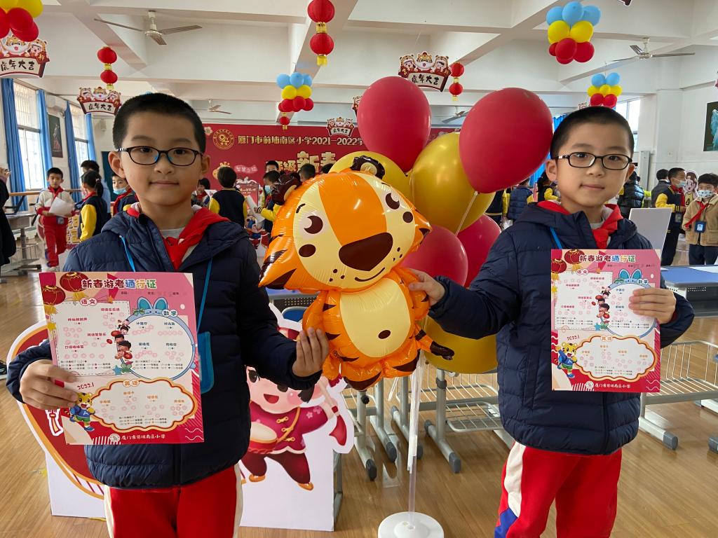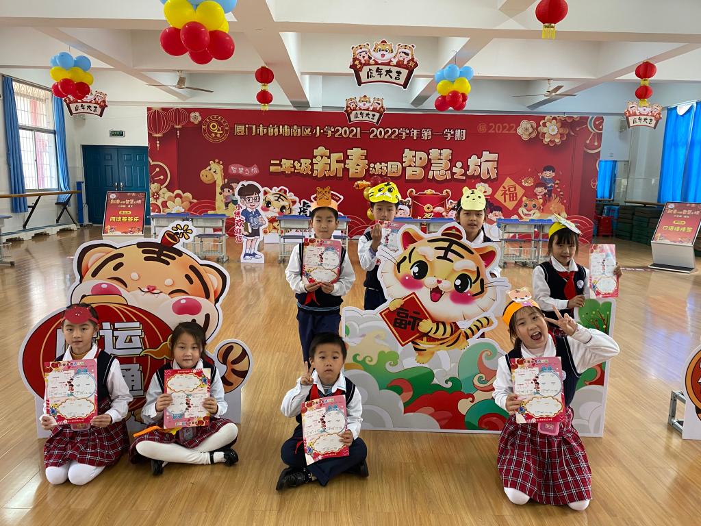 二年级以“萌虎新春游园会”为主题,孩子们戴上头饰,如一只只灵动的小老虎,信心满满地开启“闯关之旅”。