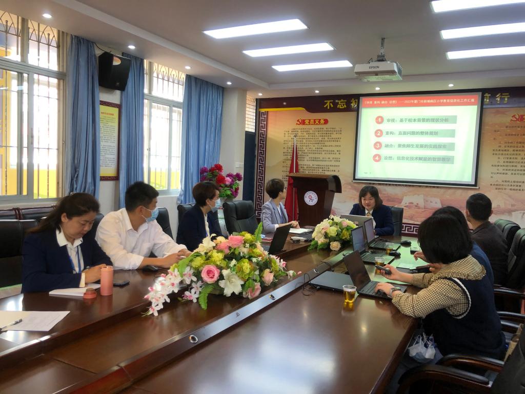 2022年4月20日上午,思明区教师进修学校教育信息技术中心主任庄若泳、副主任郑雅芬等一行人莅临我校,对信息化建设工作进行专项视导。视导组成员们主要采取查、看、听、谈等形式对我校的信息化教育教学管理进行全面细致的指导。前埔南区小学郑海燕校长,高芳、张雯副校长,教务处刘琳晖主任及学校信息化相关负责人曾长江、郑晓香等老师参与了此次视导。