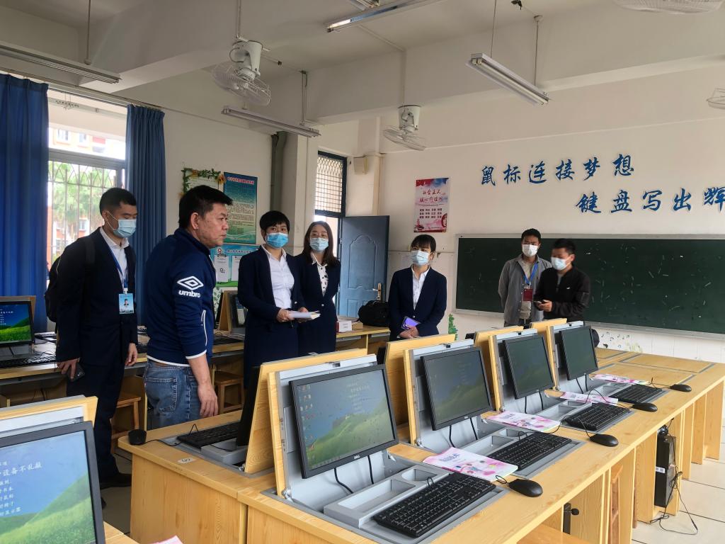 其次,视导组从网络安全、资源建设、智慧教学等方面与学校相关老师进行了深入的探讨。视导组王老师详细查看了学校网络建设及应用安全,分析了学校在网络设备上存在的问题,并提出了宝贵的建议。