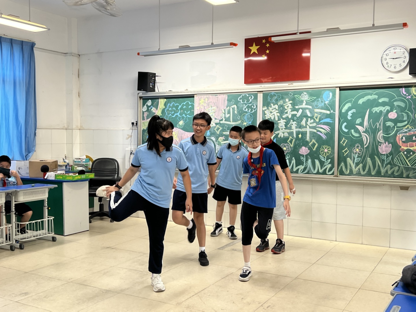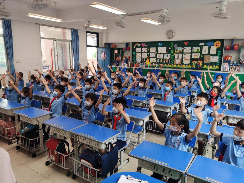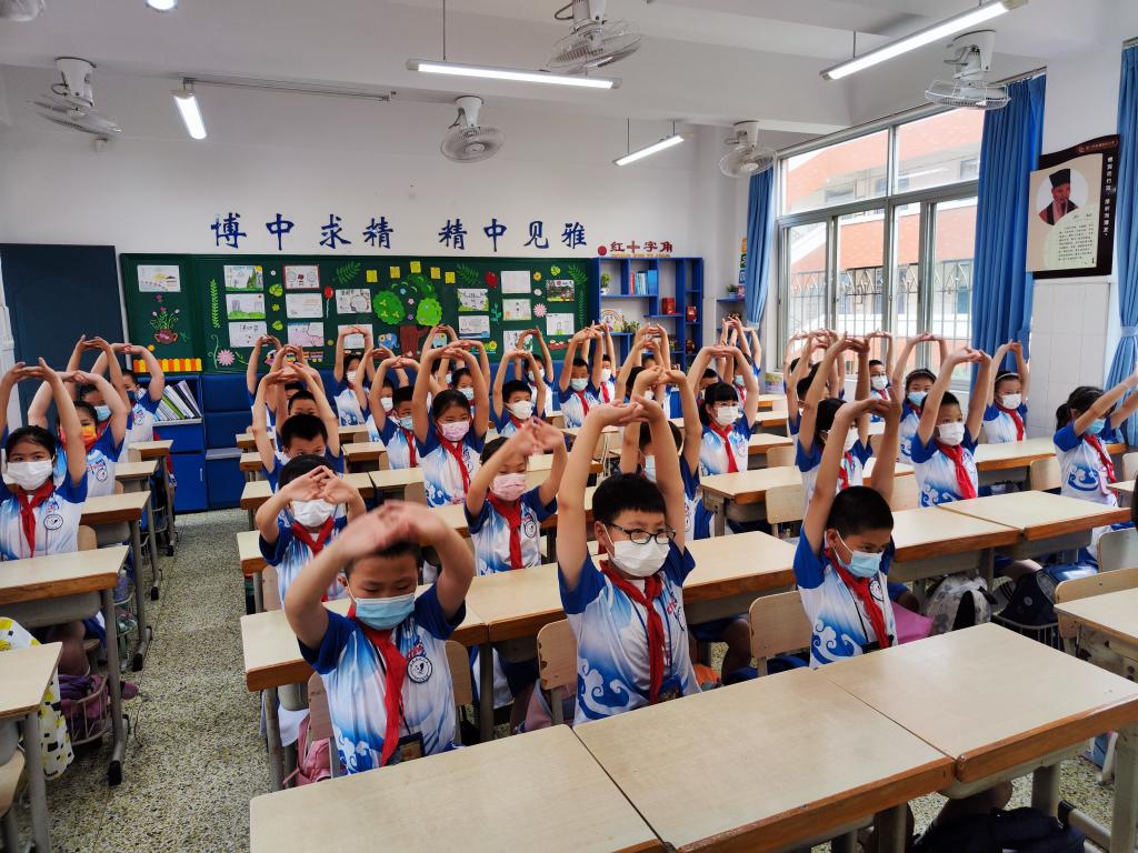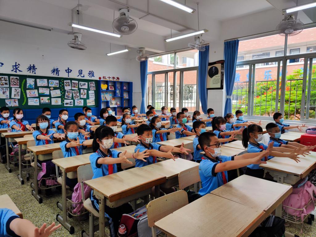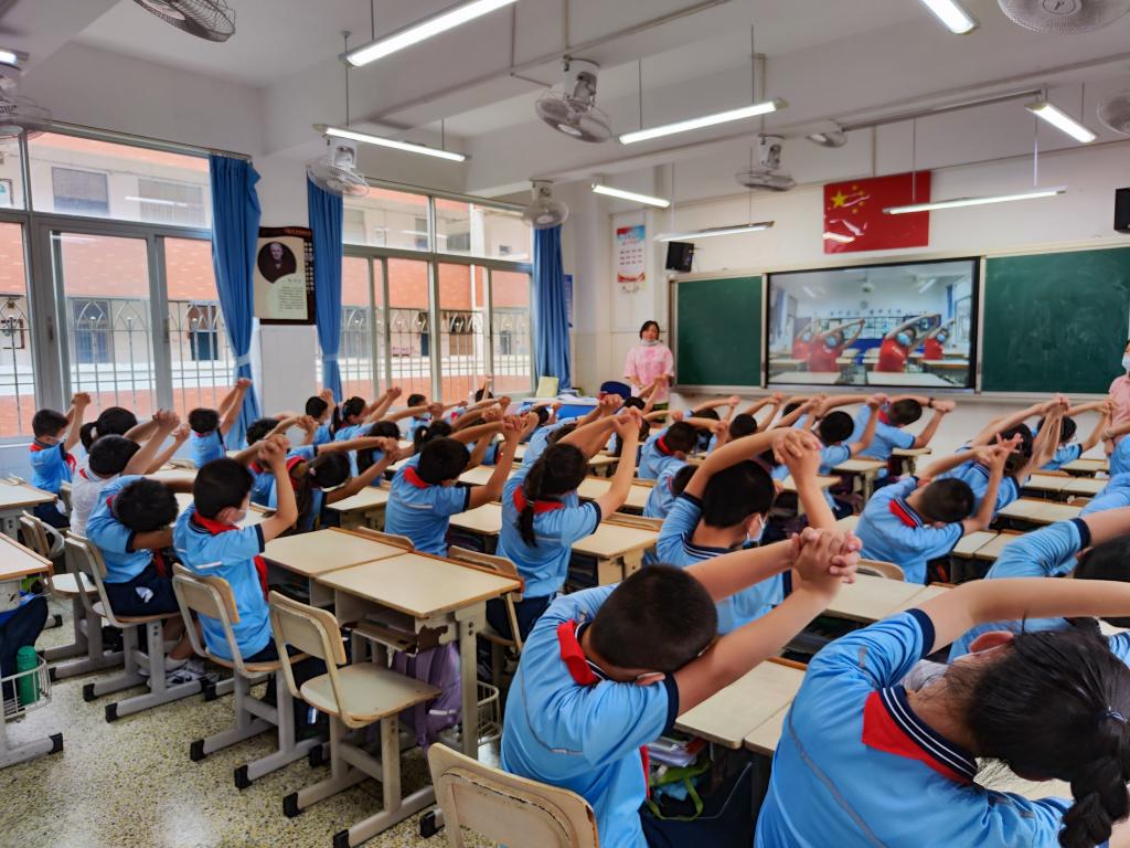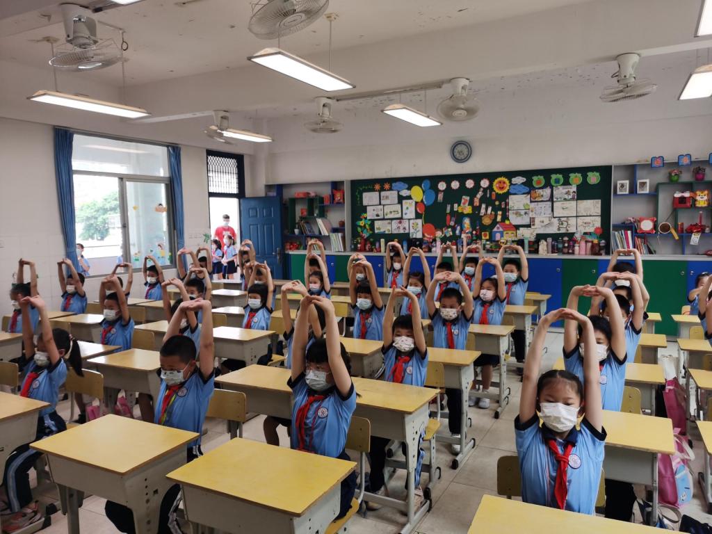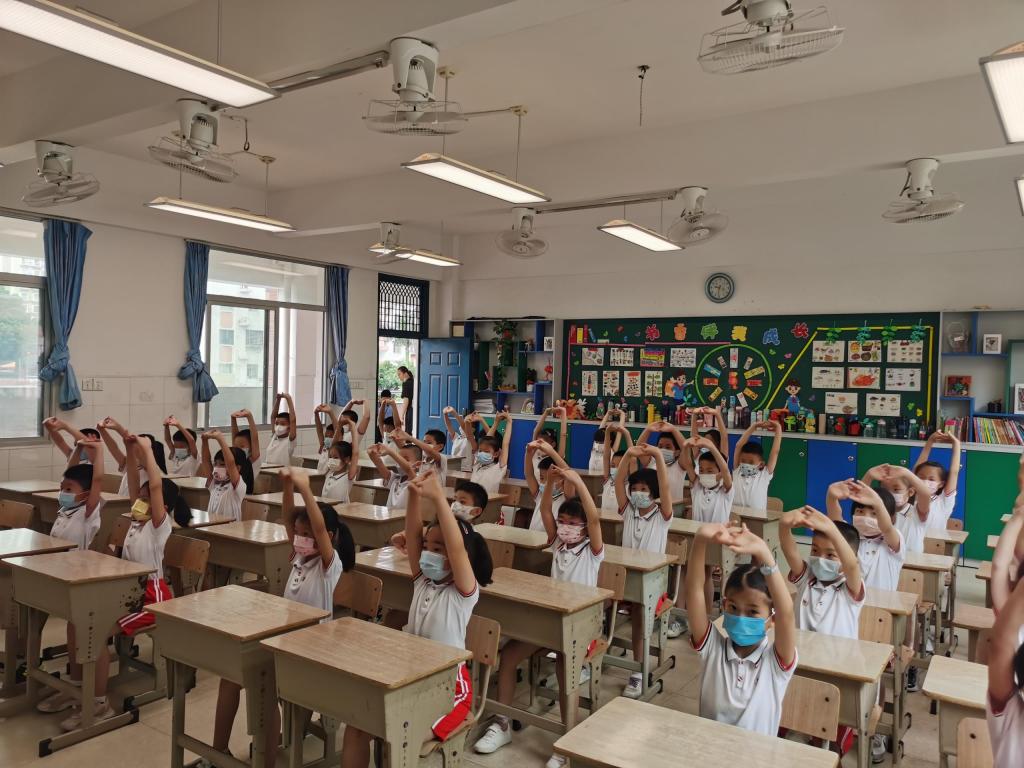 受当前新型冠状病毒疫情复杂多变的形势影响,学生的户外体育活动受到限制,于是我们积极探索室内体育活动新方式,“室内操”成为了我们的新尝试。室内操结合了小学生的身心发展特点,有效地帮助孩子们活动上肢、颈、肩等部位,缓解身心疲劳,让他们在欢快明朗的音乐中感受“音乐之美,运动之乐”。在室内课间操大比拼中,同学们身着统一服装,随着音乐运动,他们个个精神抖擞,动作整齐划一,尽显班风校风。
