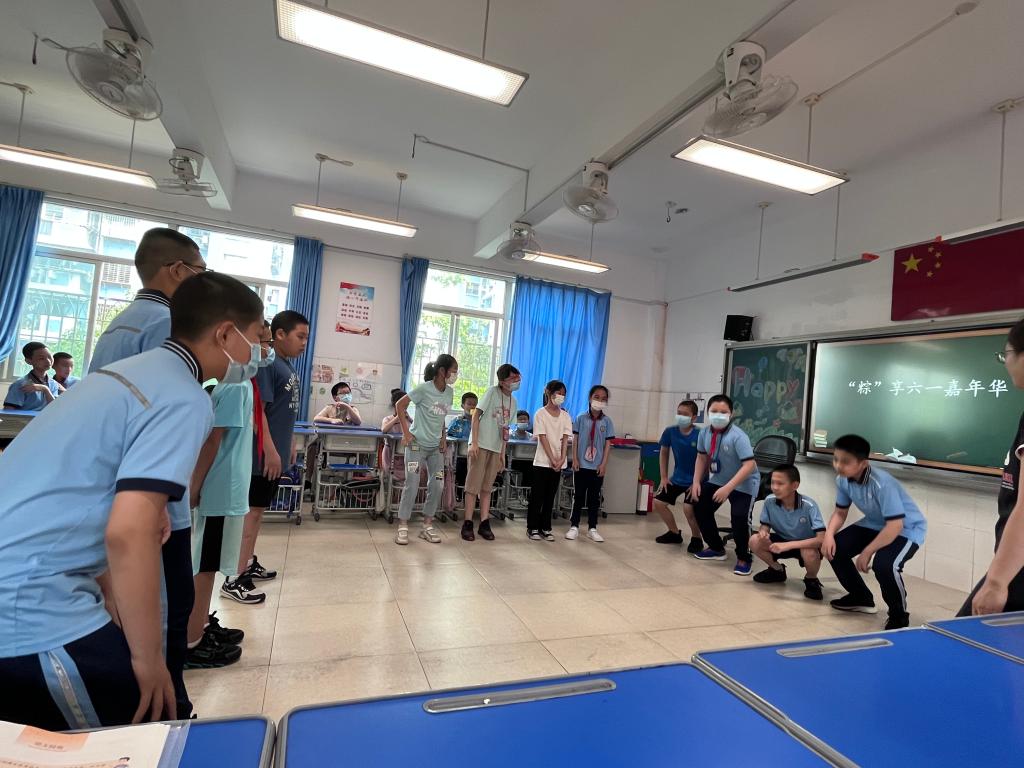 六一节同学们将自己设计的课间游戏融入活动的环节中,互相学习和挑战各种有趣的课间游戏,一起来推广金点子游戏!