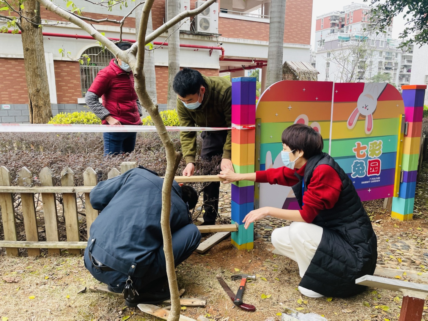 为了打造一个色彩明丽,充满童真,童趣的兔园,学校领导和何艺红段长统筹安排,热心家长亲自监工,家校携手通力合作。在兔园改造过程中涌现许多精彩的瞬间,让我们一起去看看吧!