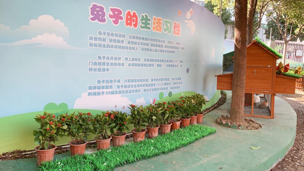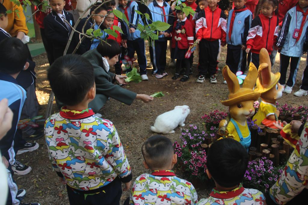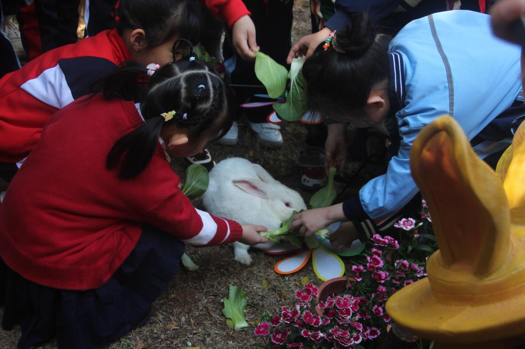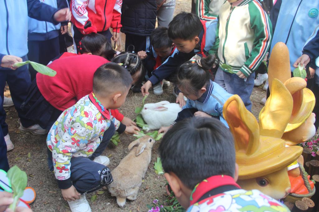 “七彩兔园”由二年级各班级包干喂养,学生可以通过持续观察兔子,了解它们的生活习性,并且通过喂养兔子、清扫兔笼等提高动手能力和责任意识。幼儿园的小朋友,在一年级大哥哥大姐姐的带领下,走进南小熟悉校园,充满童真童趣的兔园激发他们对小学生活的向往。