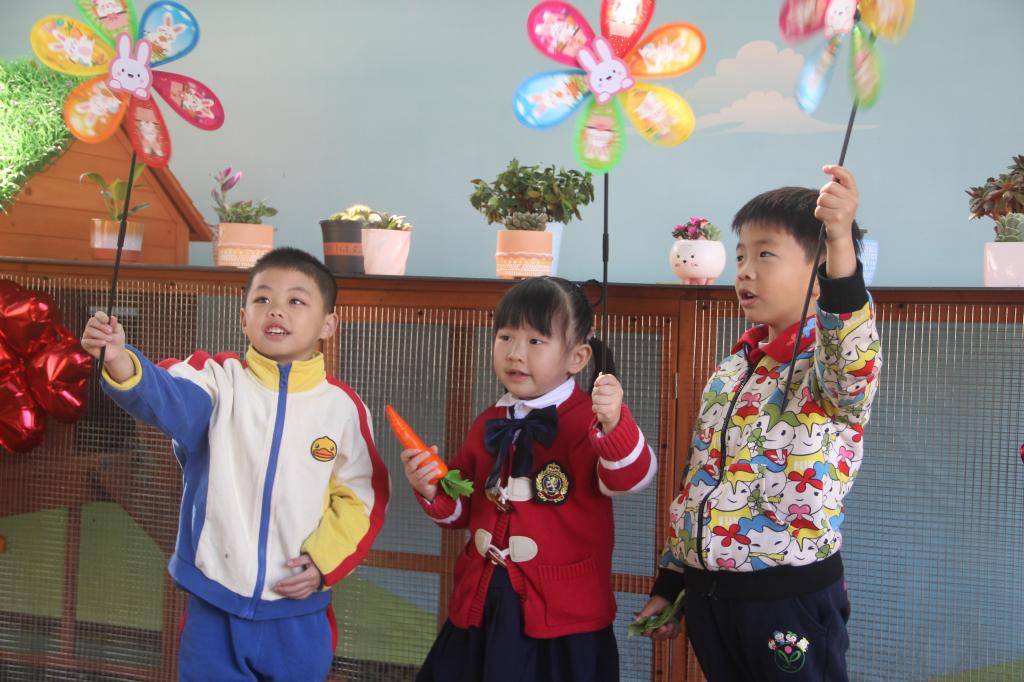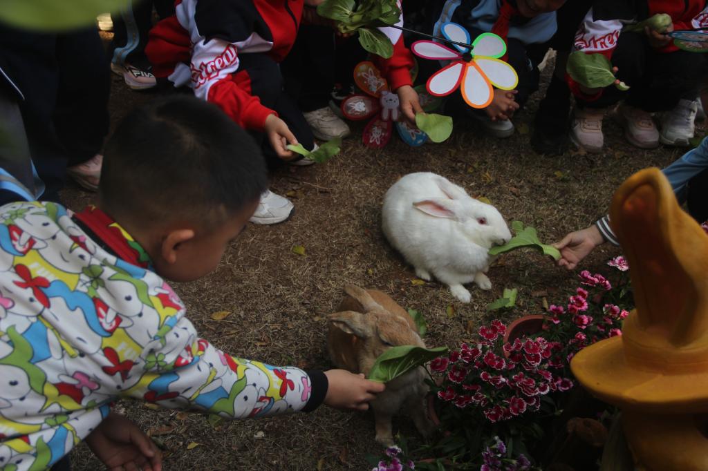 郑海燕校长亲身示范如何喂养兔子。大小朋友一拿到青菜,就热情地送到小兔子的身旁,期待它赏脸咬一口。