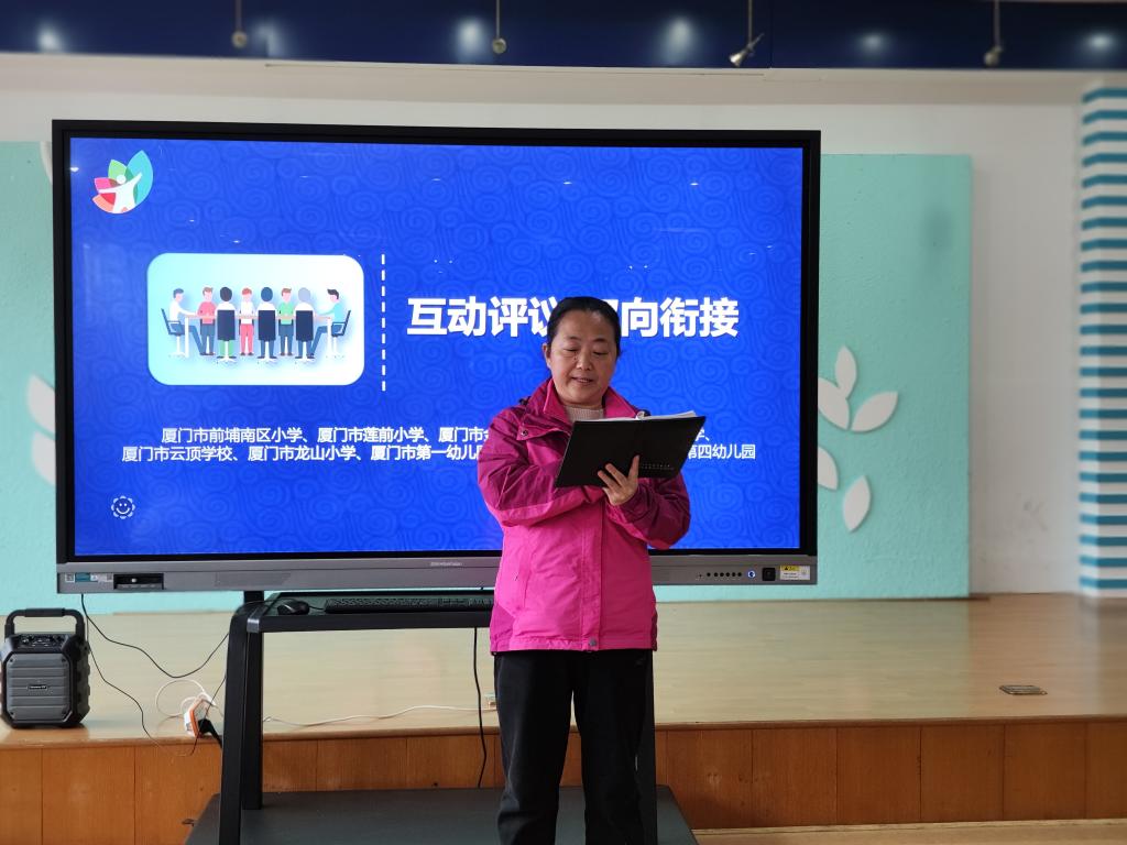 最后厦门市前埔南区小学高芳副校长总结了本次活动,高副校长认为这两堂课从主题、内容、学习能力上体现了幼小衔接,开课的两位老师都重视“如何培养孩子会学习”,幼儿园和小学在课上展现了不同的培养方式;幼小衔接的课堂研究要扎根日常,开展常态性的研讨活动,让衔接真正落地。