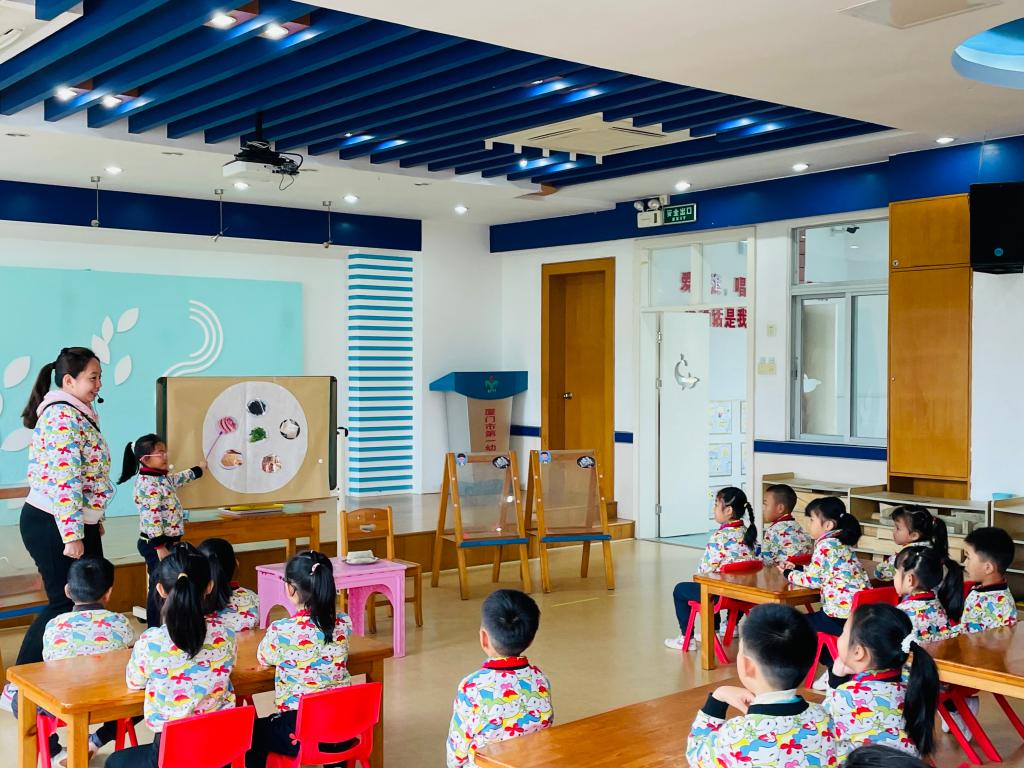厦门市第一幼儿园前埔分园黄心瑜老师通过童谣《厦门薄饼》,从厦门的美食薄饼入手,将闽南语和游戏互动相结合,让孩子在操作中听、辨、说闽南方言童谣中出现的食材名称,引导孩子学说闽南方言,感受闽南童谣的特点,喜欢上家乡至味,感受家乡独特的风土人情。