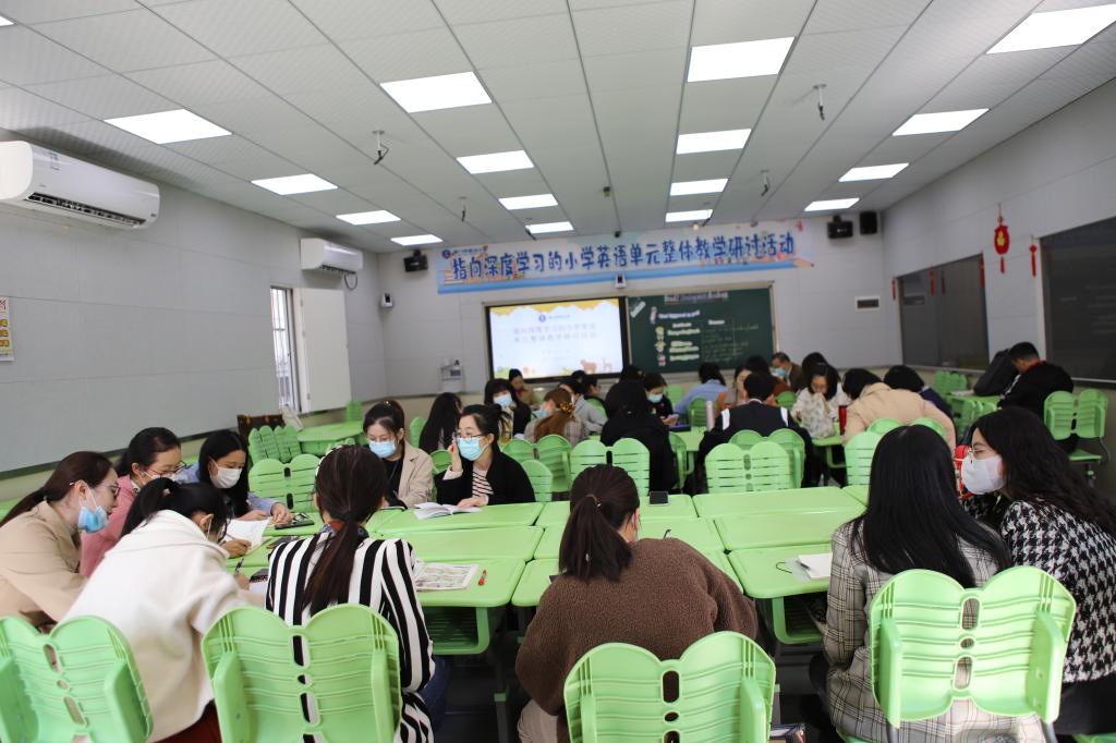 仰望晴空,万里蓝天,12月8日上午,厦门市外国语附属小学片区的英语老师们和思明区四年级的英语老师们相聚厦门市思北小学,围绕“指向深度学习的小学英语单元整体教学”这个主题展开研讨。本次的区级研讨活动由片区组长齐建军老师主持,名师工作室的黄碧华老师也亲临现场指导。