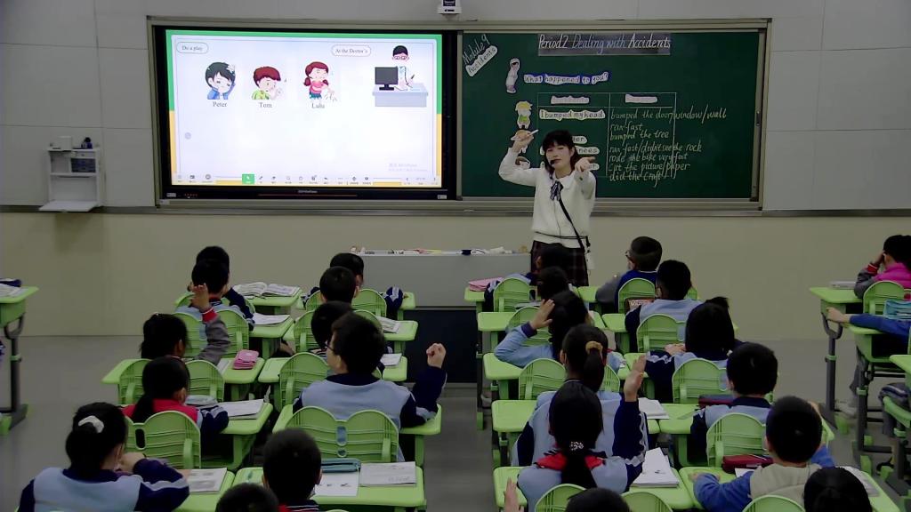 第二节课由黄吉瑶老师执教,带着任务How to deal with accidents?通过对课文的浅层学习What happened to the children? 逐步进入深度学习,让学生深入思考How did he bump the head? How did she cut the finger?How did she hurt the knees?,利用表格式板书回收学生生成资源,实现了深度学习的本质。吉瑶老师还通过学生扮演的小患者与护士的互动,到小患者与医生的互动让学生体验如何处理意外事故并通过短视频提升本课的主题意义Stay calm ! Be careful!