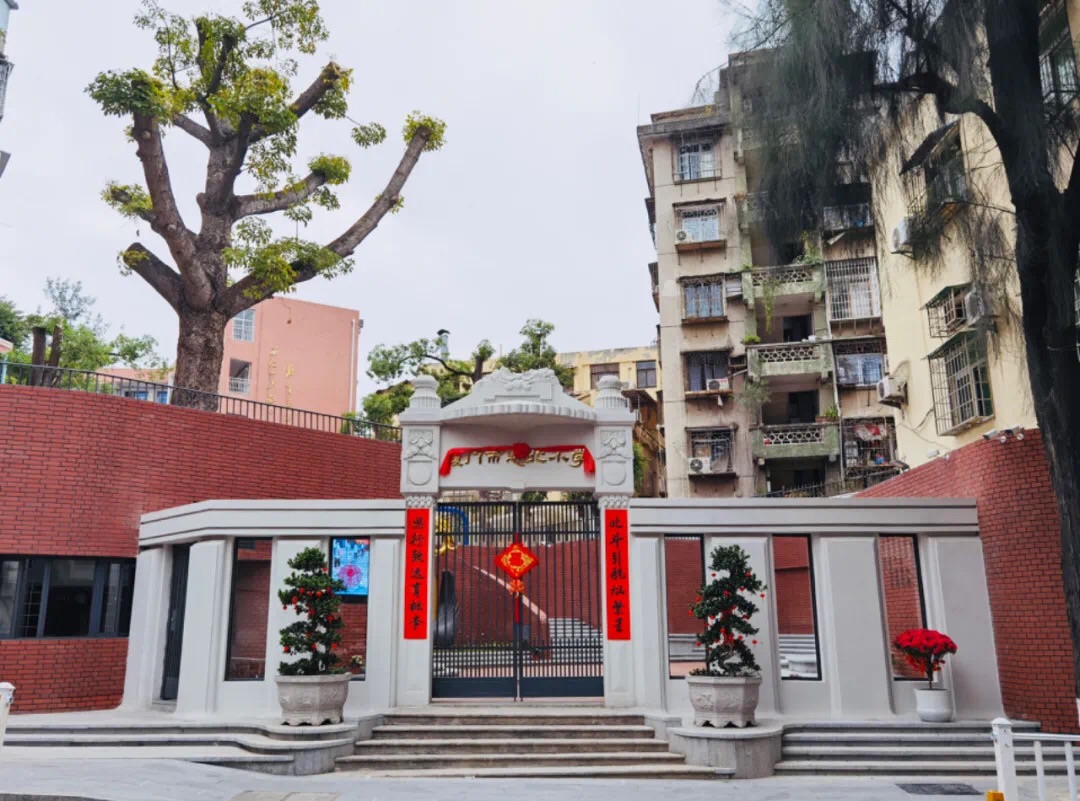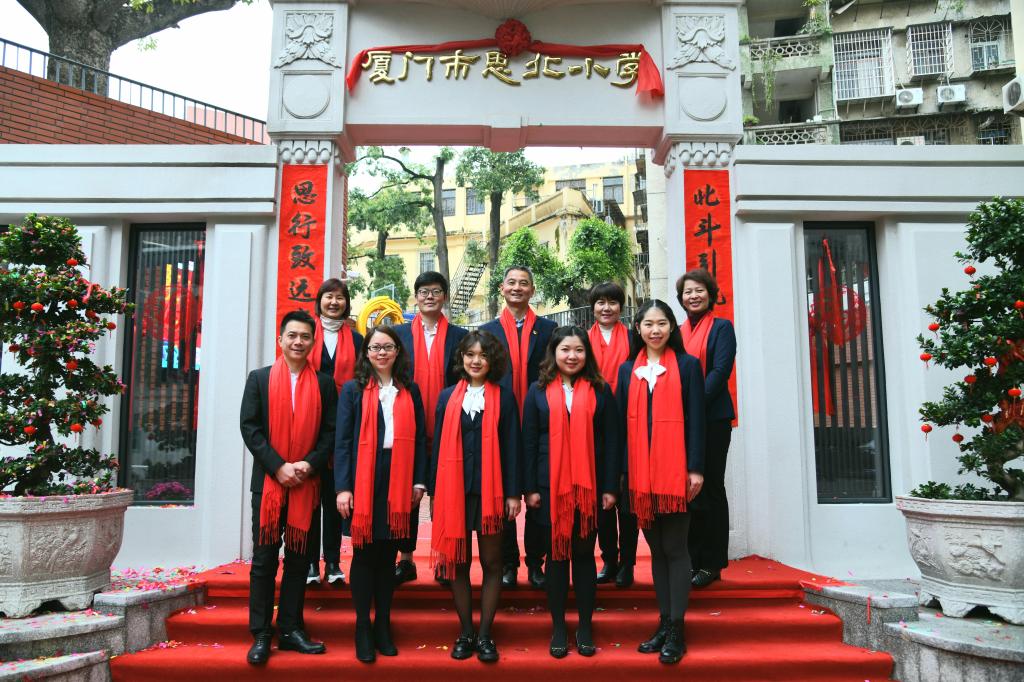 “厦门市思北小学”七个大字镶嵌在校门门楼上端,熠熠生辉,与校园内的红砖墙体相互衬托,端庄大气。校门成为了老城区大同路东段一道靓丽的风景线。