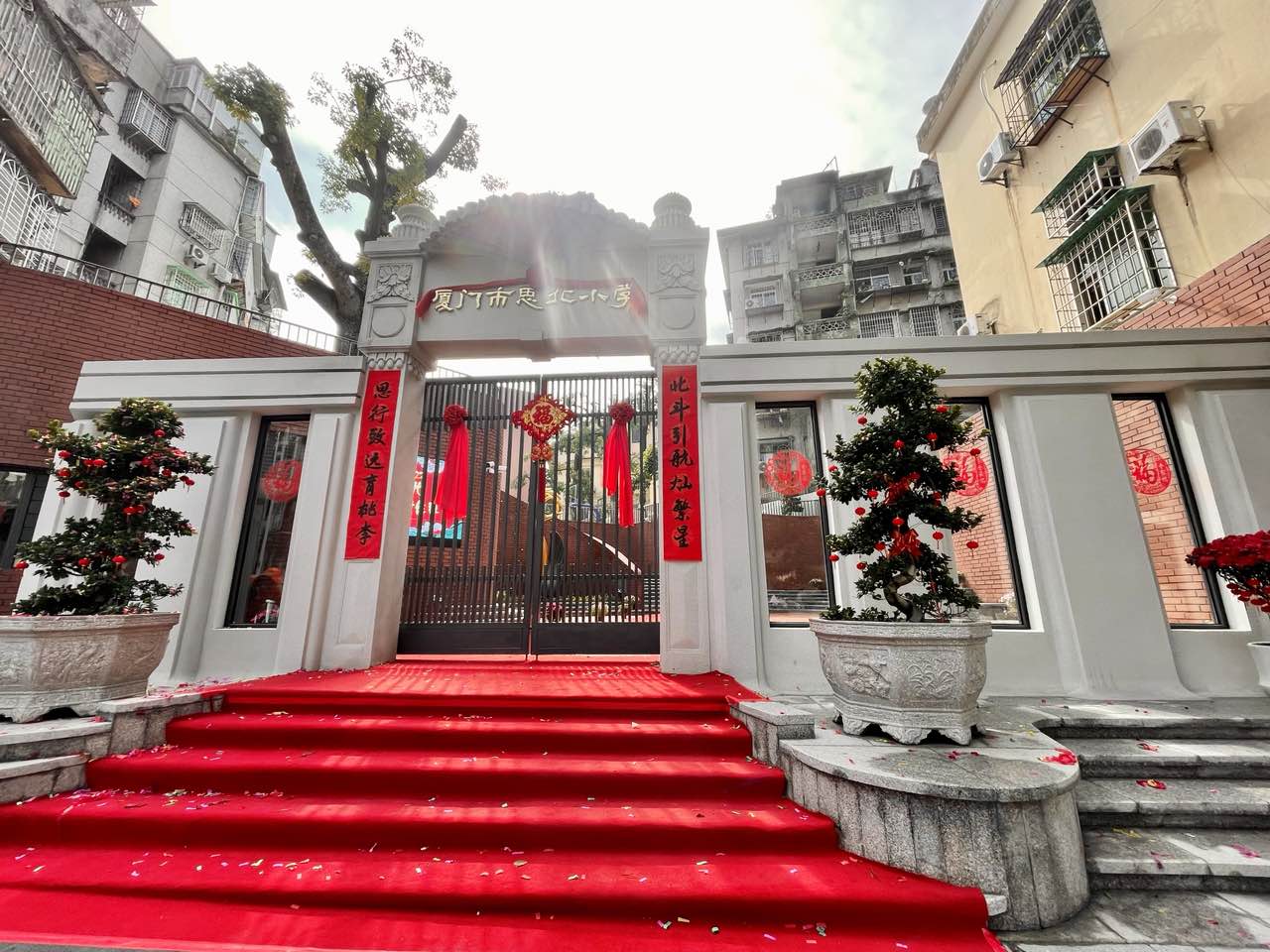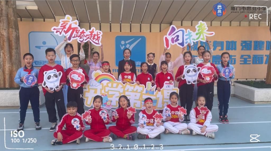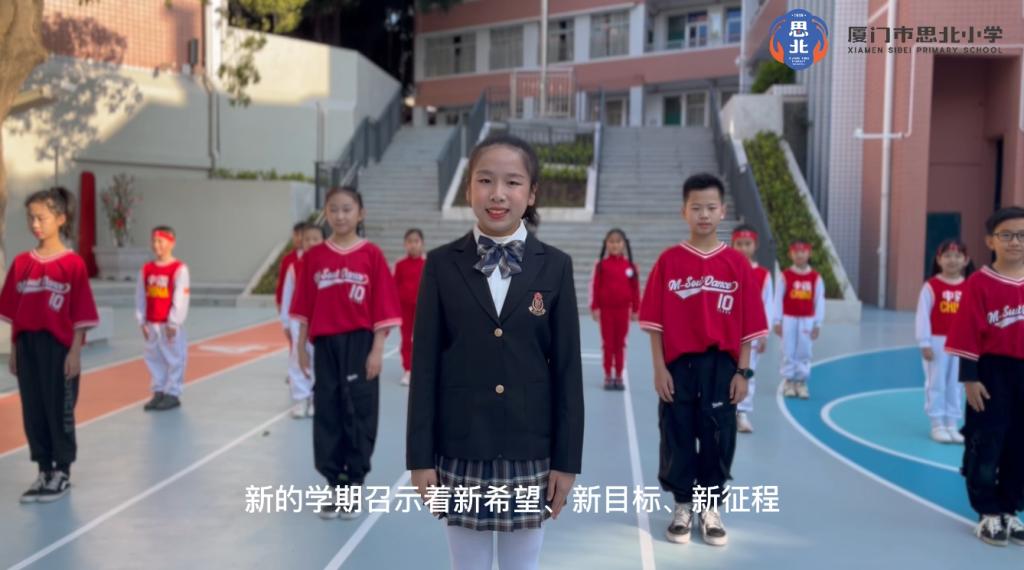 2022年2月16日上午,厦门市思北小学迎来了开学仪式暨开学第一课。在庄严的升旗仪式后,大队长邓曦芝向同学们介绍新校门。