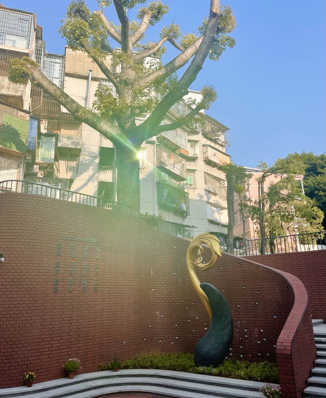 步入校园,一座雕塑犹如惊鸿。棵嫩芽,破土而出。枣红砖墙上,颗颗种子,各具特色。这思北校园中最独特的雕塑,是信念的存在,是理想的传递。、