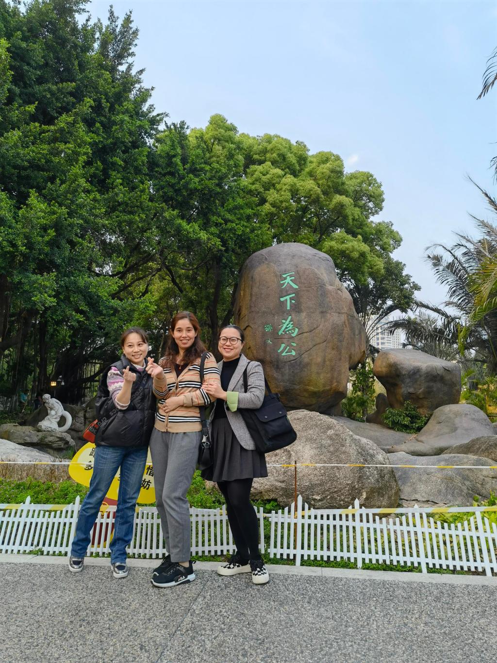 四、五、六年段的老师们走进曾被称为“华南第一园”的中山公园,它见证了厦门这座城市的历史,承载着几代人共同的记忆,更是城市的一个文化符号,老师们走在改造后的中山公园无不感叹“水更清了、路更宽了,花更美了”。踏青中老师走在公园的每一处,回顾着属于自己的回忆,同时留下新的记忆。