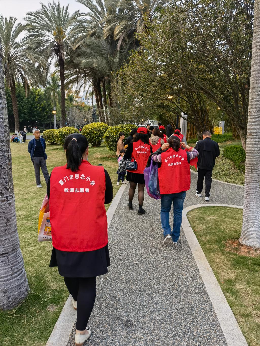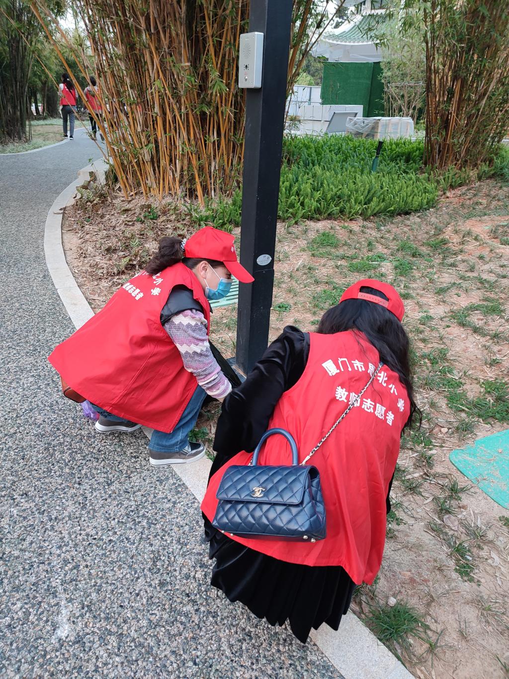 3月4日,我校组织一到三年级全体教师到厦门市中山公园开展学雷锋志愿服务活动。在园区内,教师们穿上红马甲,积极投入到志愿服务活动中:他们拿着扫帚、簸箕把路面的垃圾、花圃上和草地上的废弃物,集中投放到附近垃圾桶中;将园区、路边违章停放的共享单车移动到规范停放位置,使之更为整齐,改善了市容面貌。