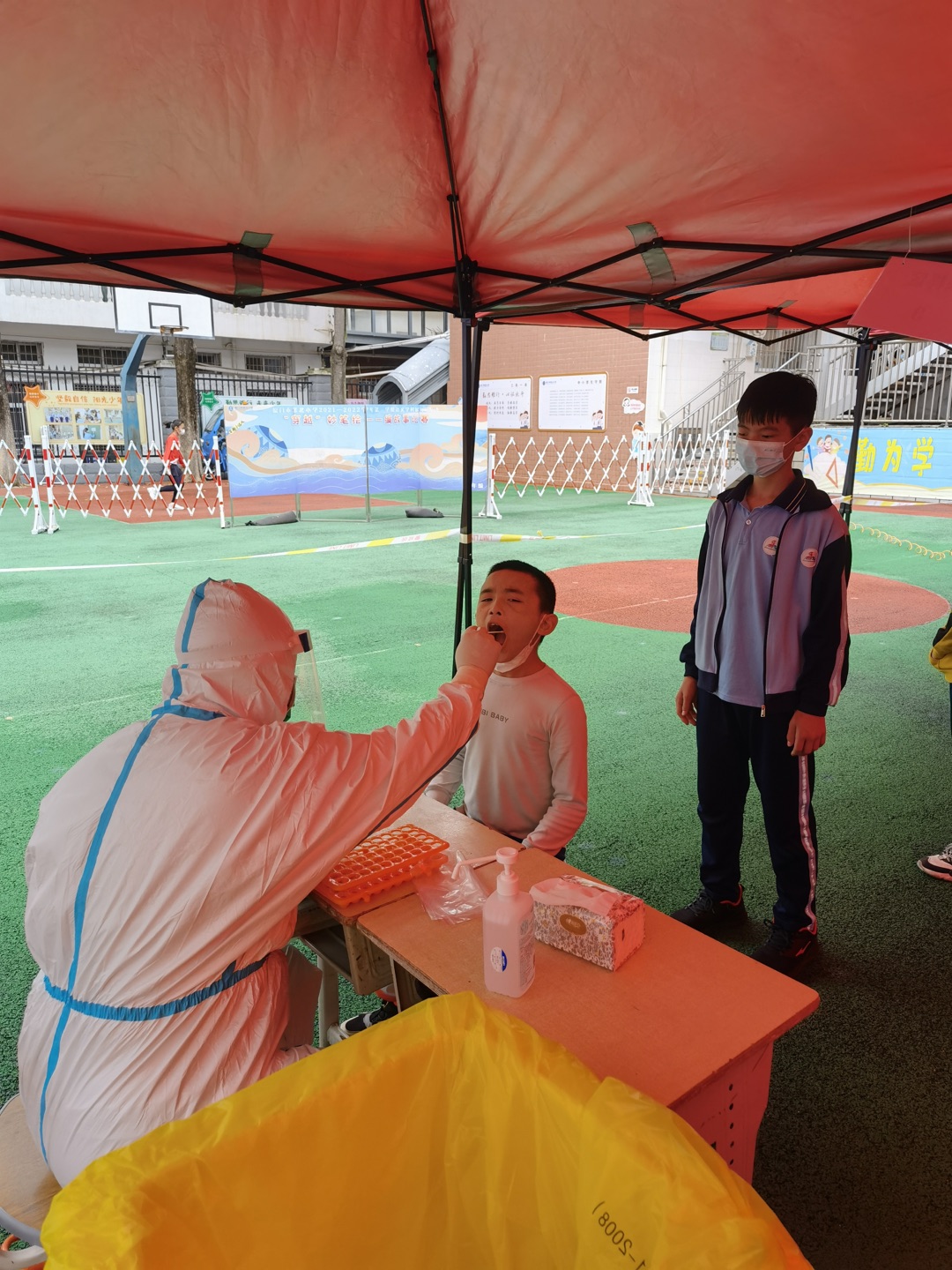 26日上午,我校积极开展核酸检测准备工作,以全面的谋划,保证26日下午核酸检测工作顺利进行。