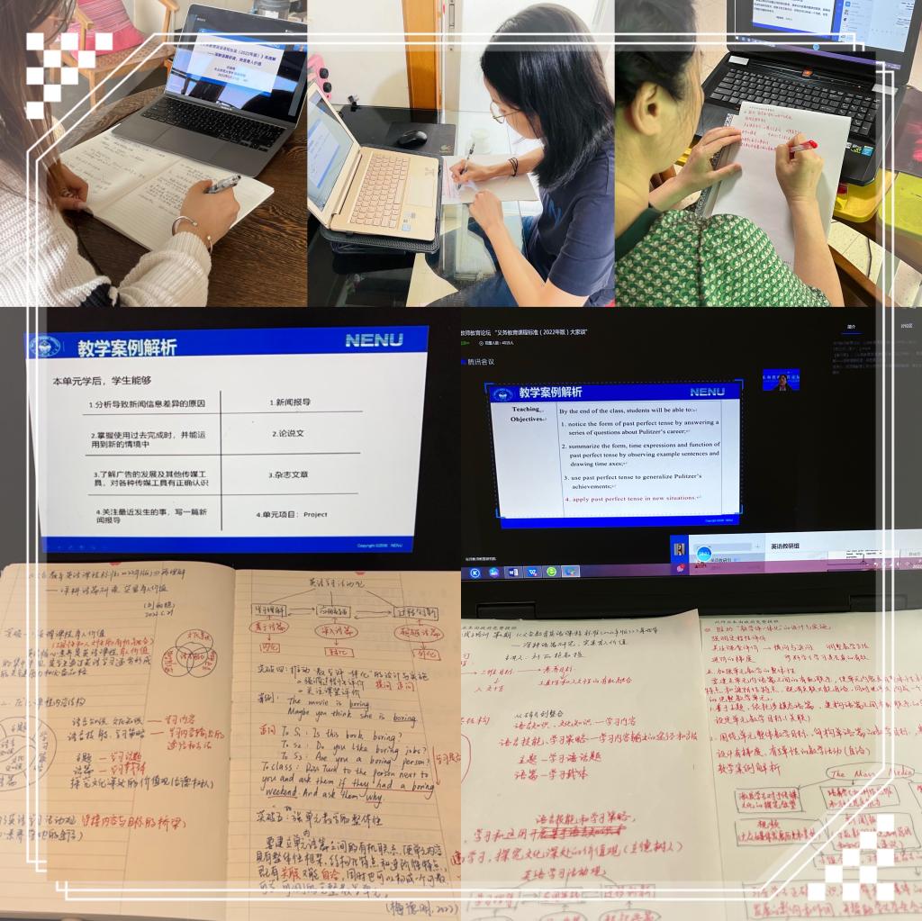 4月22日开始,老师们启动自我修炼新课标的模式,5月18日进行组内的新课标应知应会的答题,让新课标新理念住进每位老师的心里。5月21日开始,积极参与专家们的线上培训,每位老师都认真聆听来自刘丽艳教授的《深耕语篇研究 突显育人价值》 程晓堂教授的(义务教育英语课程发展的新方向)及王蔷教授的《2022版义务教育英语课程标准的主要变化及意义》等讲座,明晰新课标主要变化及意义、五个突破点,明确义务教育英语课程发展的新方向,老师们认真听讲,积极撰写心得体会。