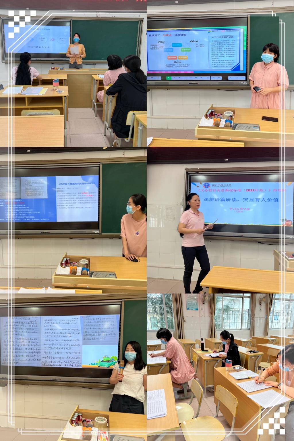通过自我研修与专家培训之后,5月25日英语组的老师们围着《走进新课标 明晰新突破 明确新方向》,对《义务教育英语课程标准(2022年版)》再理解进行组内交流,从自我学习再到专家培训,老师们对新课标有了全新的收获,明晰课标新修订的五个突破点:1、旨在发展学生核心素养,强调课程育人价值; 2、优化课程内容结构;3.提出了英语学习活动观; 4、推动“教学评一体化的设计与实施;5、加强单元教学的整体性。在教学活动中要时刻关注,老师要教什么,怎么设计教学,学生学什么,学生的学习活动是什么,学生的学习是否真正发生了,如何进行评价;不仅要关注学生的输入,更要关注学生的输出,要避免输入和输出的脱节。