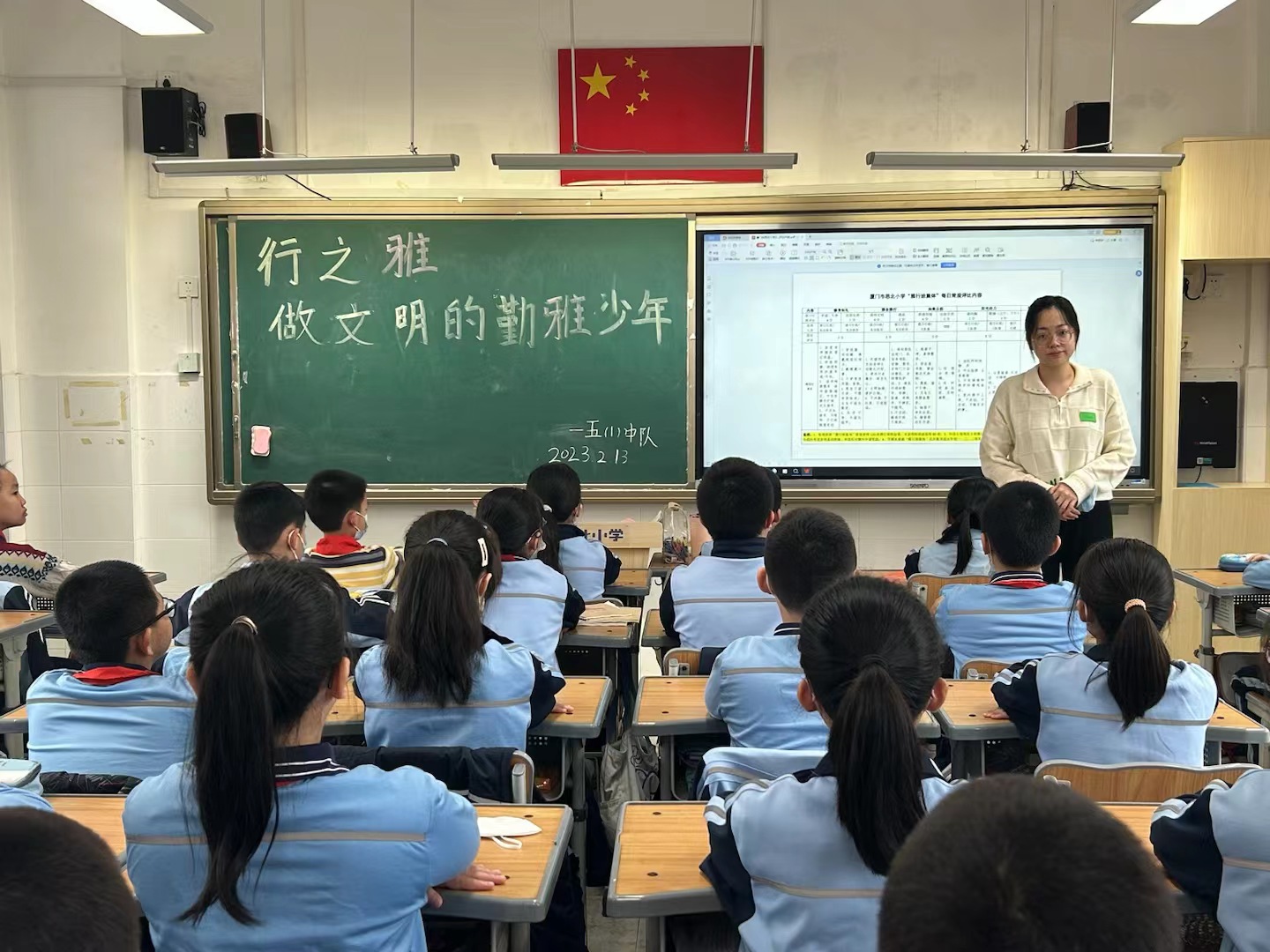 我校将学生行为习惯养成与“红领巾争章”活动相结合,在校级特色章中,设立“雅行章”鼓励学生做“文明有礼,雅行尚美”的新时代好少年。在激励性晋级争章活动中,学生逐渐明晰“文明”的定义,从“知文明礼”到“做文明人”。