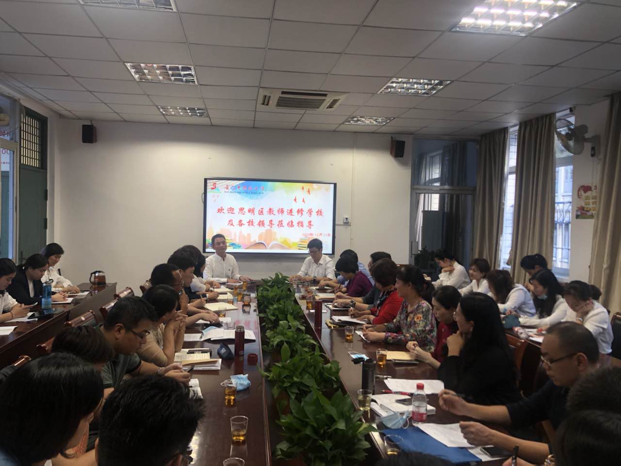 下午3:00,会议由思明区进修校王妙香主任主持,所有参与视导的专家老师们以及我校的各位领导和各教研组、备课组组长参会。