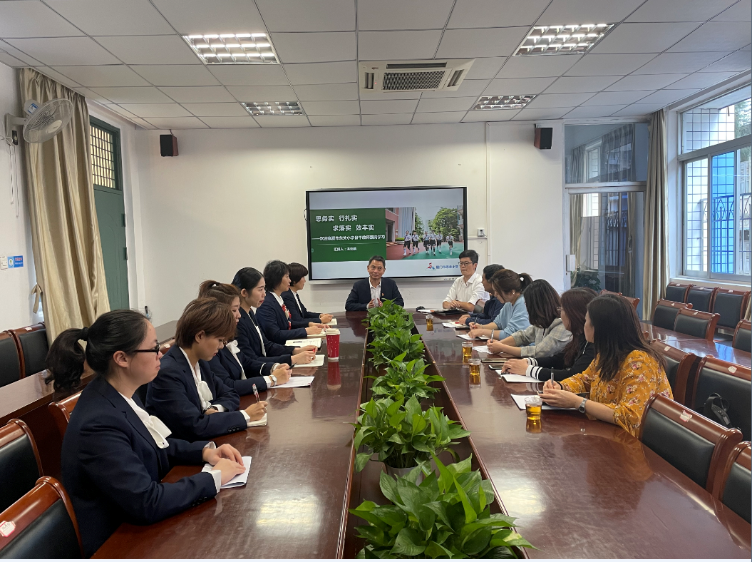 郭校长还主持召开了本次跟岗学习的见面交流会。在会上,为远道而来的教师们先介绍了领导班子成员。洪云鹏主任汇报我校“勤思雅行,心怀北斗”的办学理念及近几年来的团队建设及制度建设等方面的实施,从学校的基本概况、课程落实、教学管理、队伍建设和学生发展方面对学校情况作了详细的介绍。“勤思”是学校开展教学工作和教师专业发展系列活动的主题,“雅行”是学校德育和学生综合素质评价工作的方向,致力于打造“勤奋、善思”的思北教师队伍,培养出一批批“勤奋、善思”的思北少年。